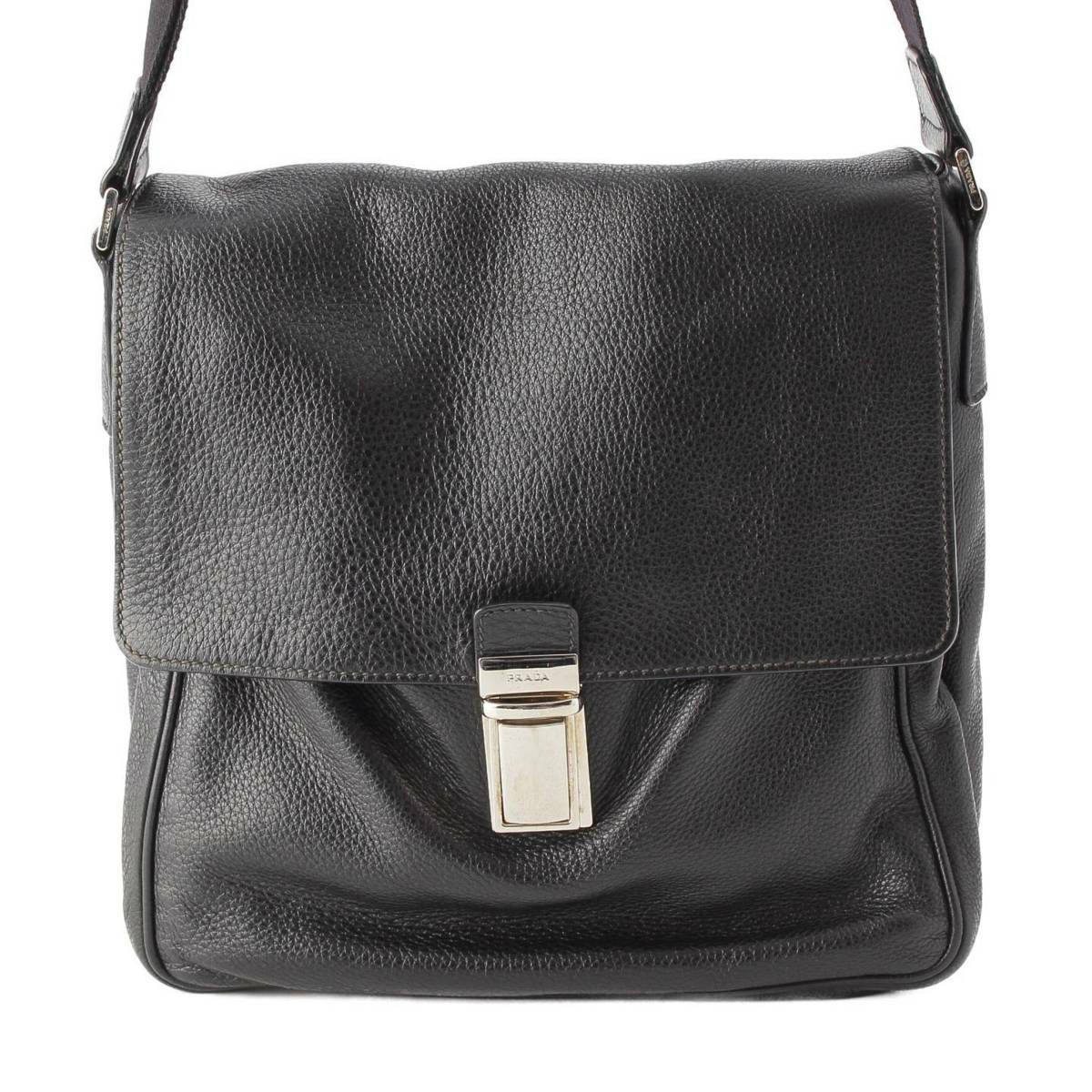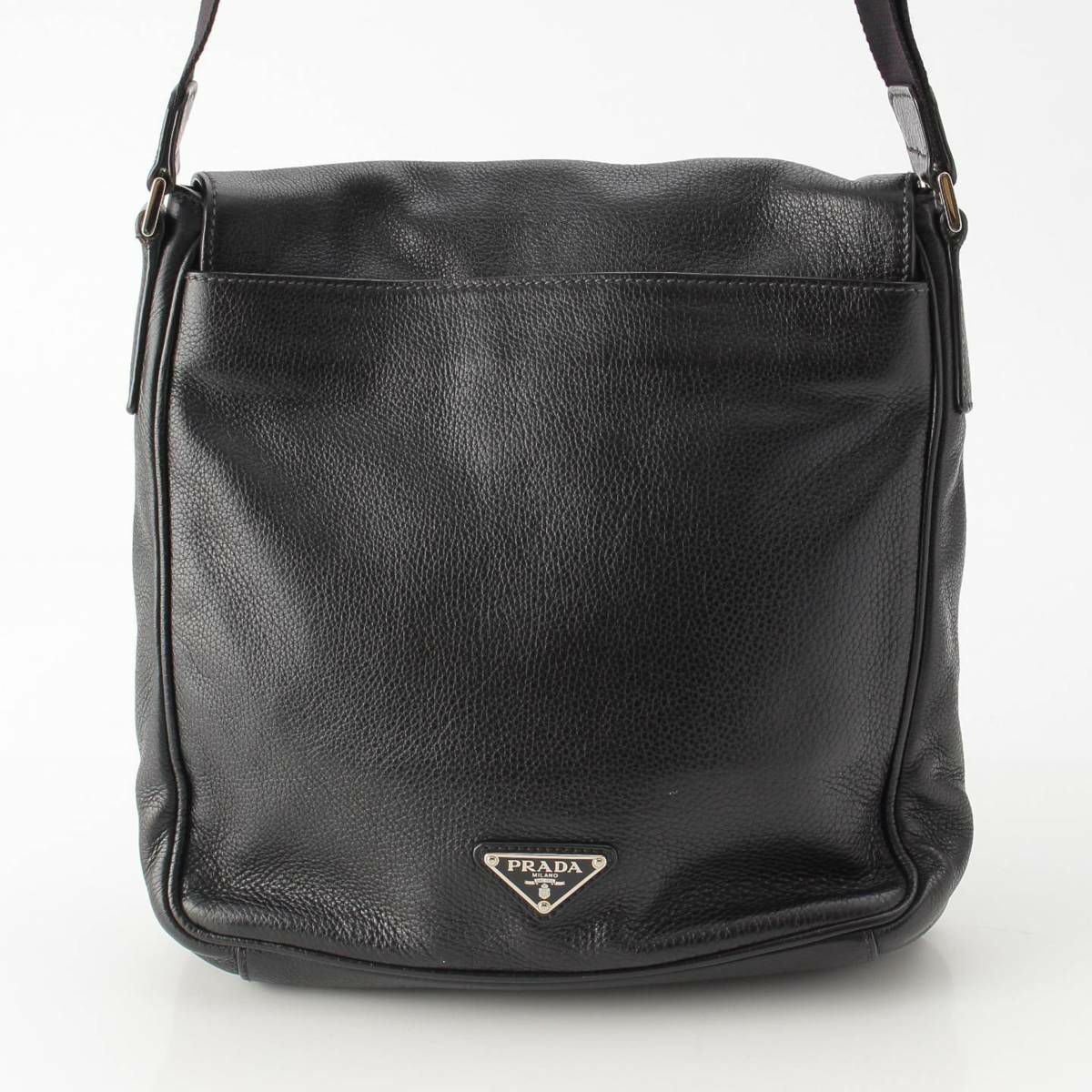 プラダ Prada 三角ロゴ プレート レザー シルバー金具 ショルダーバッグ VA1037 ブラック