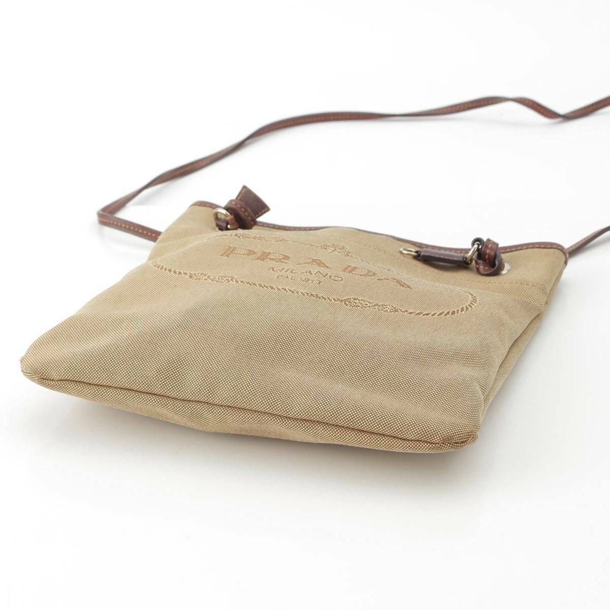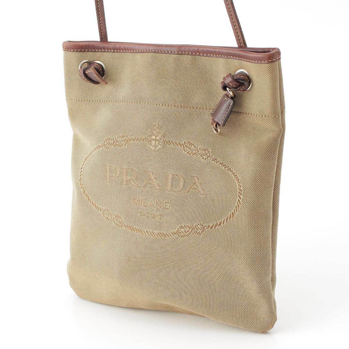 プラダ Prada ロゴ入り ジャガード レザー ショルダーバッグ 肩紐 肩掛け シルバー金具 ブラウン