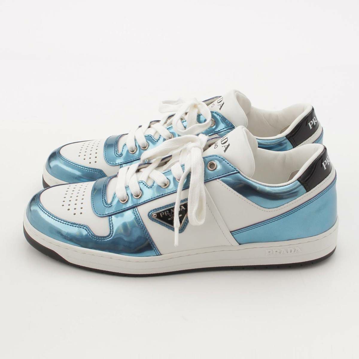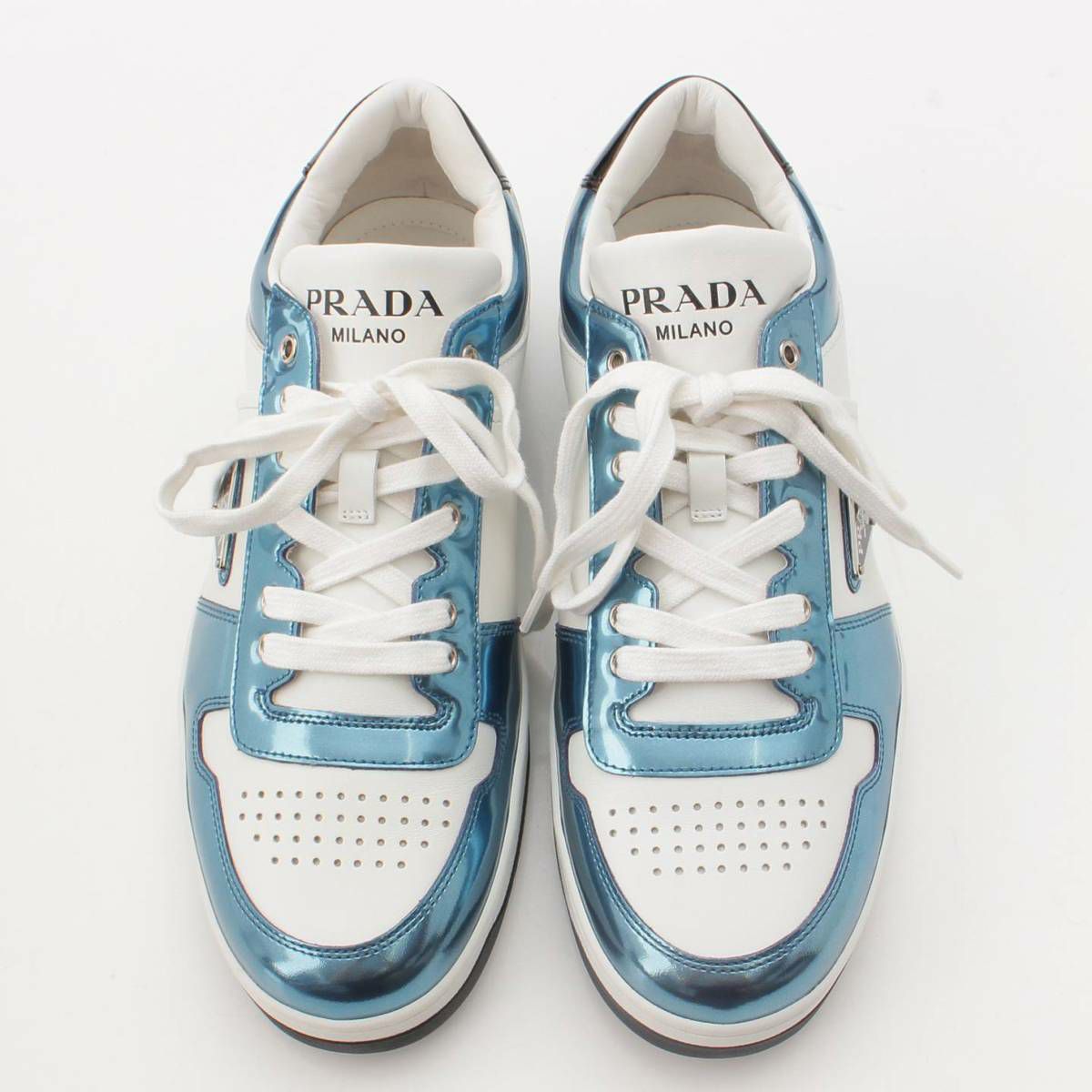 プラダ Prada メンズ ダウンタウン バックロゴ スニーカー シューズ ホワイト×メタリックブルー 8