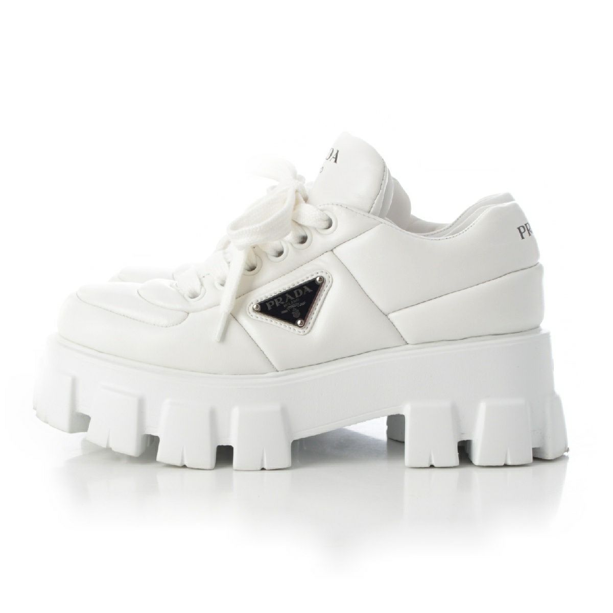 他の画像を見る PRADA プラダ ナッパレザー モノリス パデット ロゴ シルバー 厚底 スニーカー シューズ ホワイト 37 在庫切れ お気に入りに登録する 当店特別価格 ¥ 88,000 税込 円 80,000円