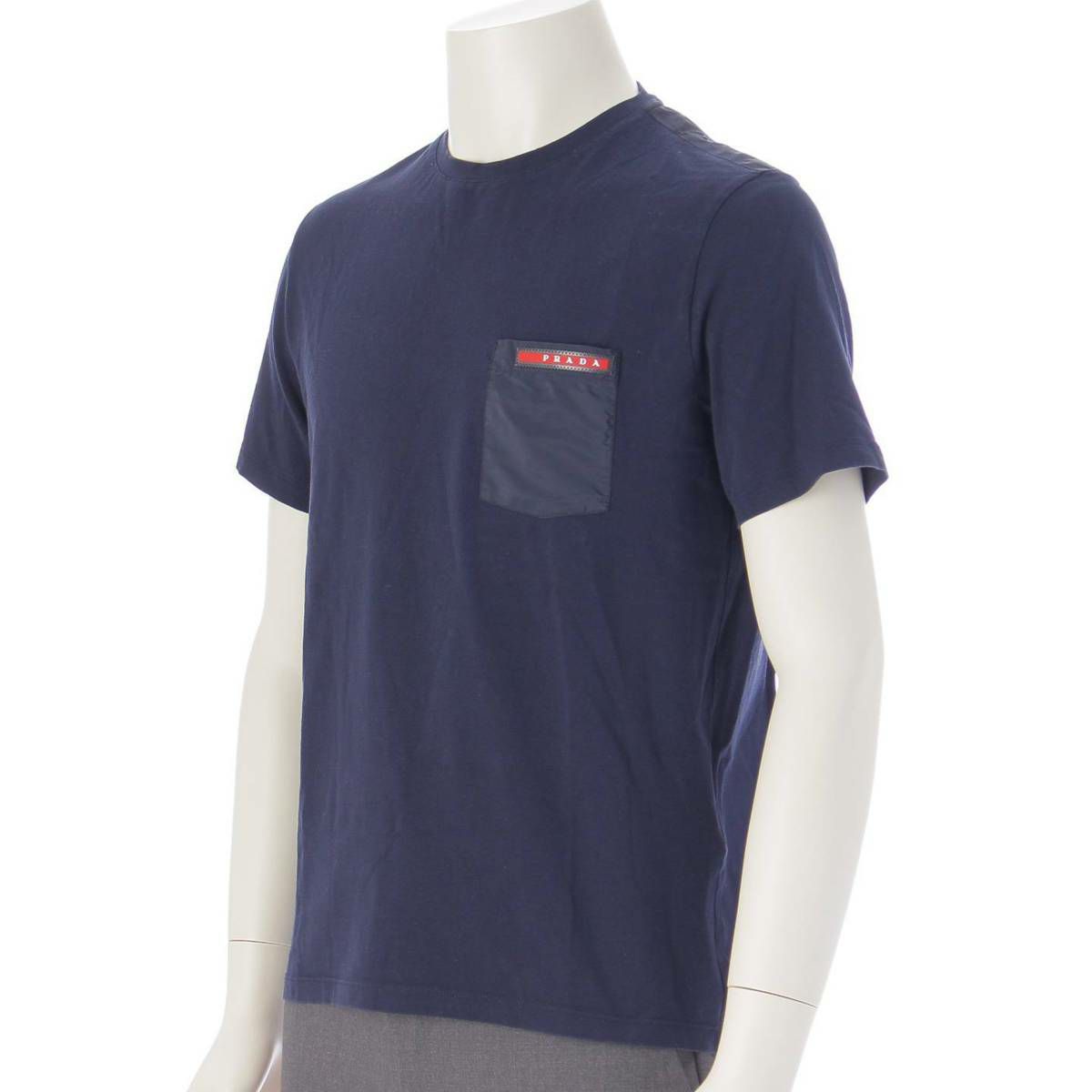 プラダスポーツ Sport 18年 メンズ ナイロン切り替え Tシャツ 半袖 トップス カットソー ネイビー M