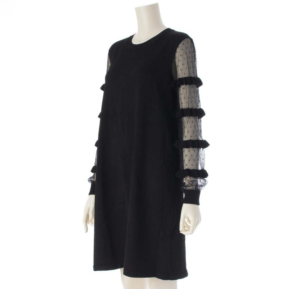 レッドヴァレンティノ Red Valentino フリル レーススリーブ ニット ワンピース トップス ニット QROKD12347T ブラック S