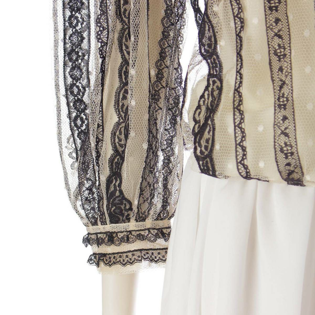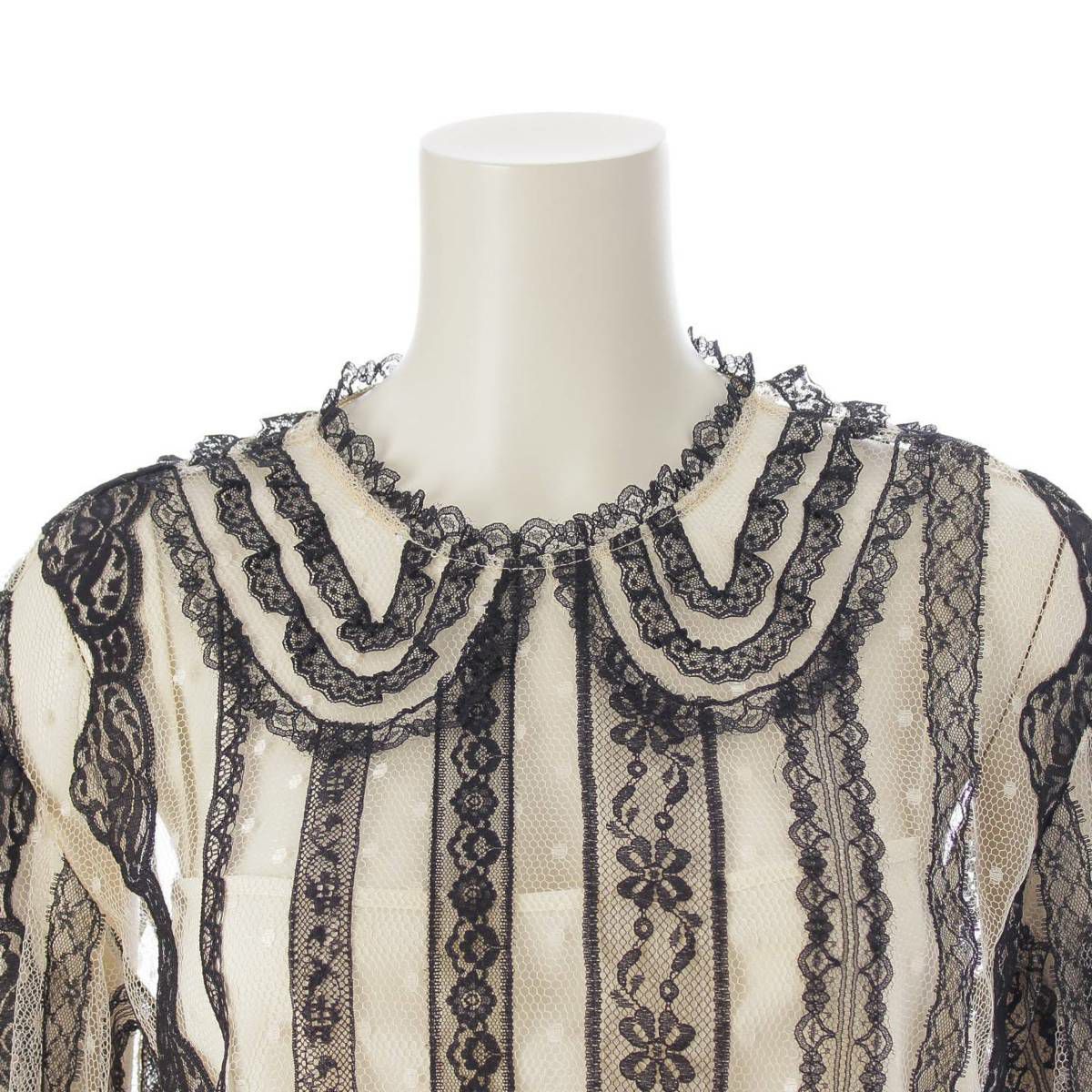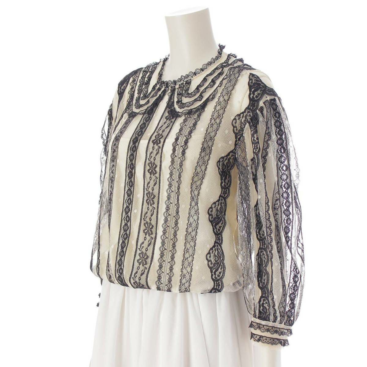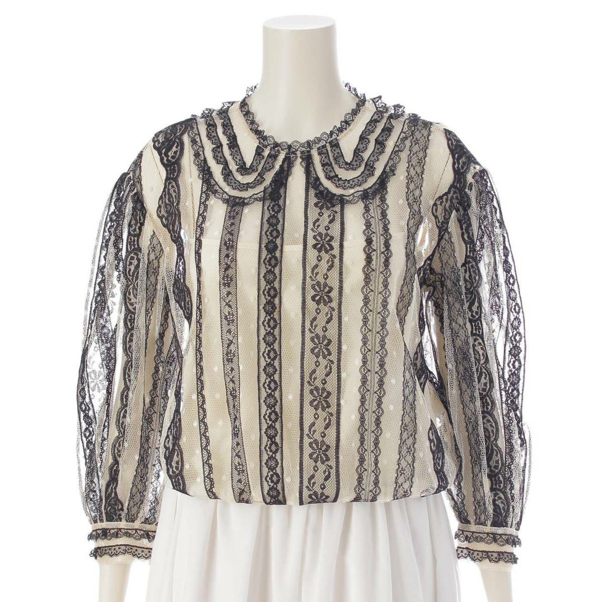 レッドヴァレンティノ Red Valentino 21年 フラワー レース ストライプ ブラウス トップス ブラック×ホワイト 40
