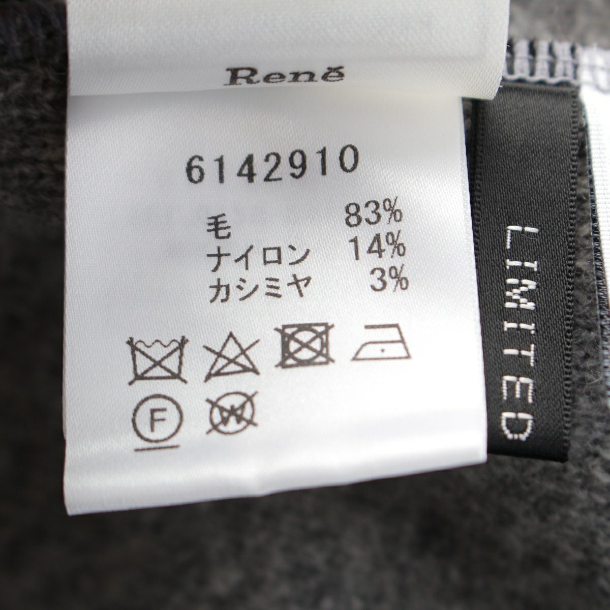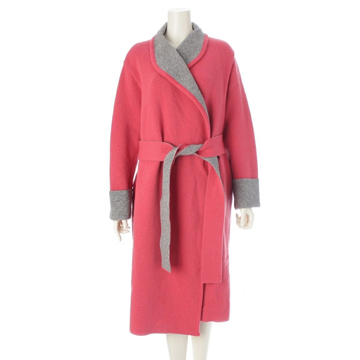 ルネ 21年 ウール カシミヤ混 ガウン コート アウター 6142910 グレー×ベリーピンク 36