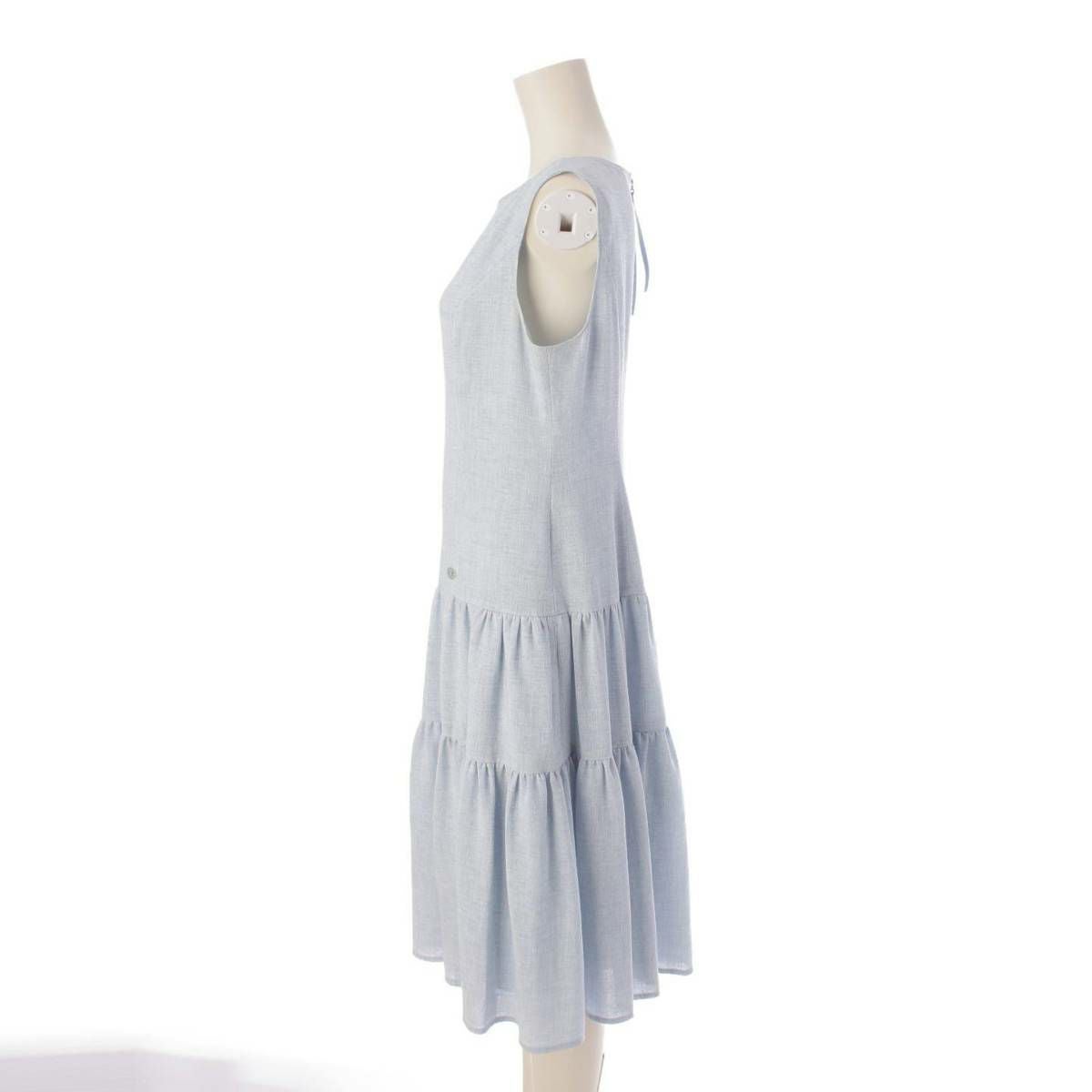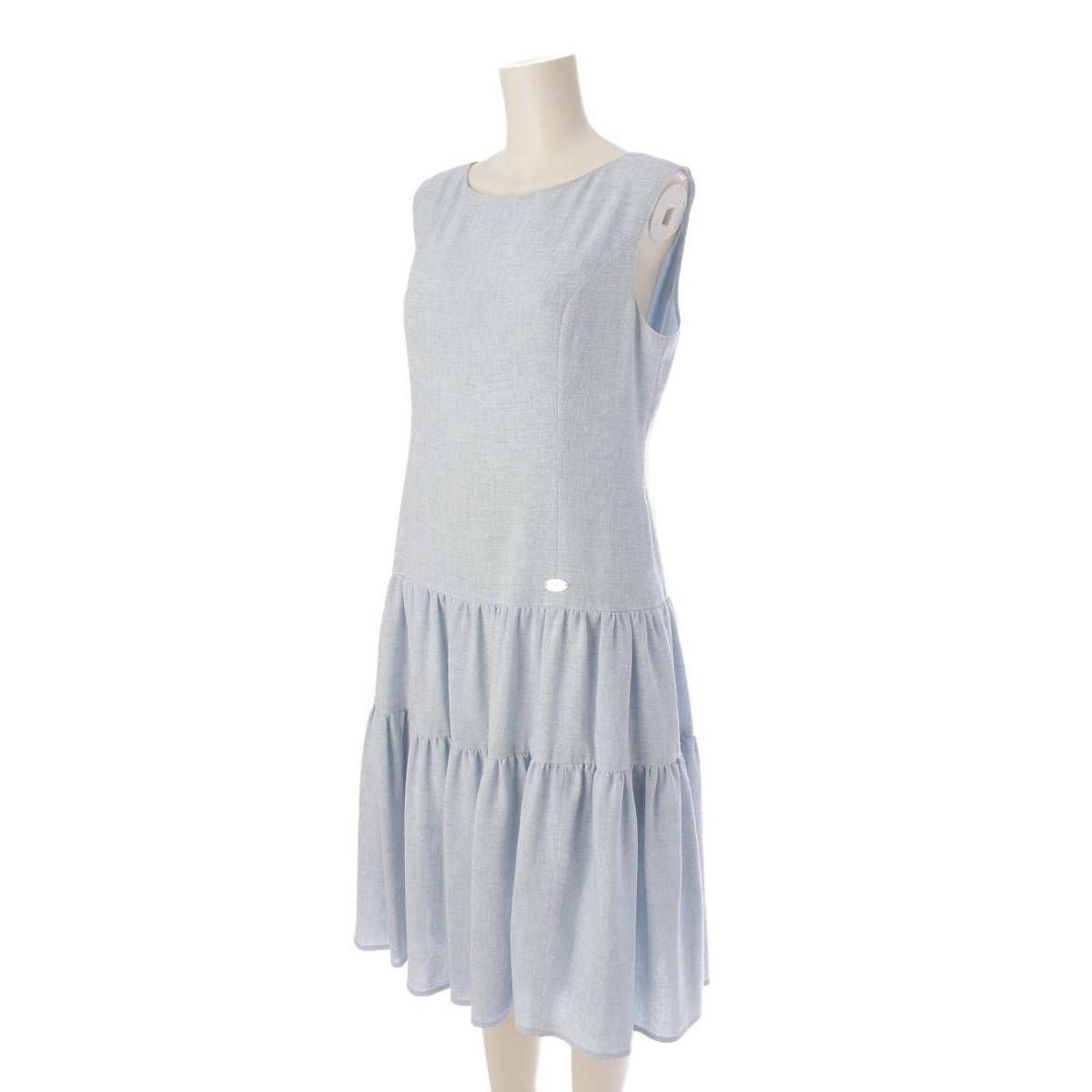 ルネ Rene 22年 トリアセテート ギャザー ノースリーブ ワンピース 5226010 ライトブルー 36