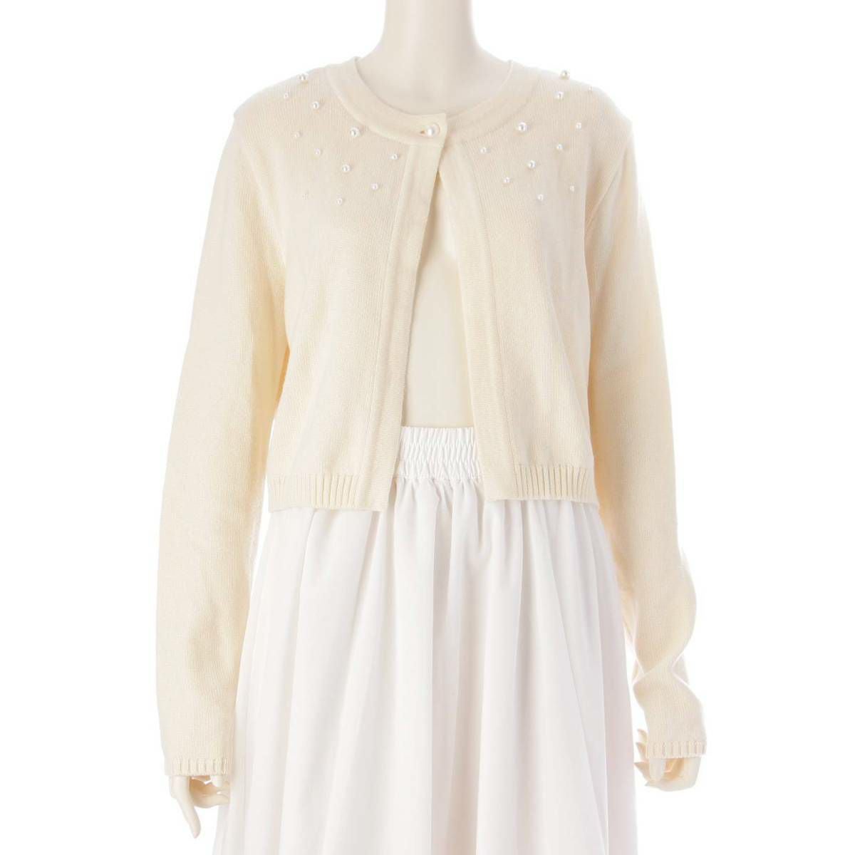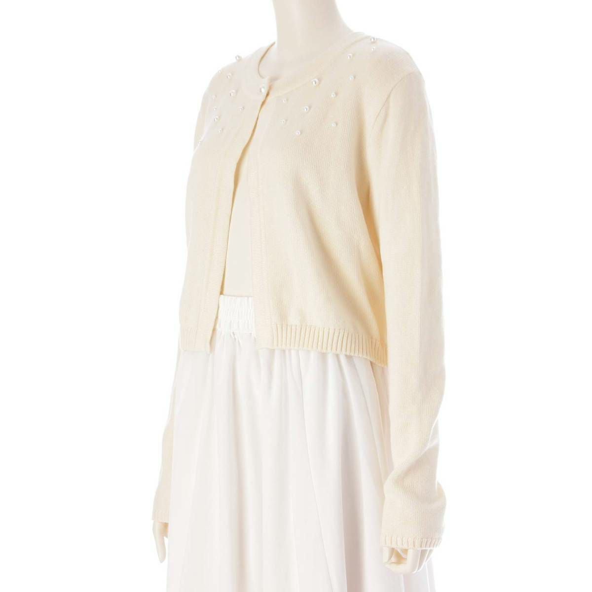 ルネ Rene 22年 パール ボレロ ウール カーディガン 長袖 トップス 6232560 オフホワイト 38