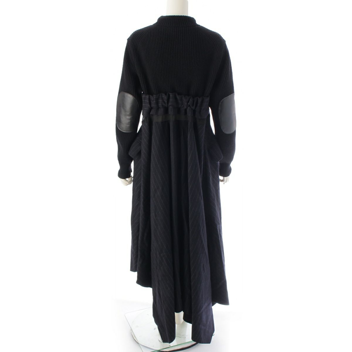 サカイ 22AW ウール Wool Knit × Chalk Stripe ワンピース ドレス 22-06327 ブラック×ネイビー 2
