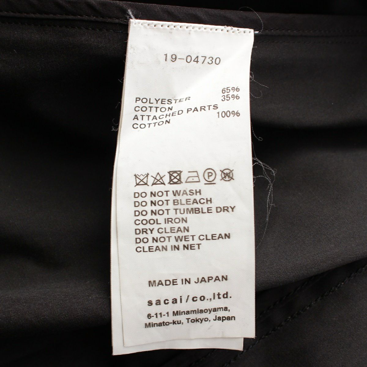 サカイ 19SS Contrast Panel Dress サイドファスナー ドッキング シャツ ワンピース ドレス 19-04730 ブラック 2