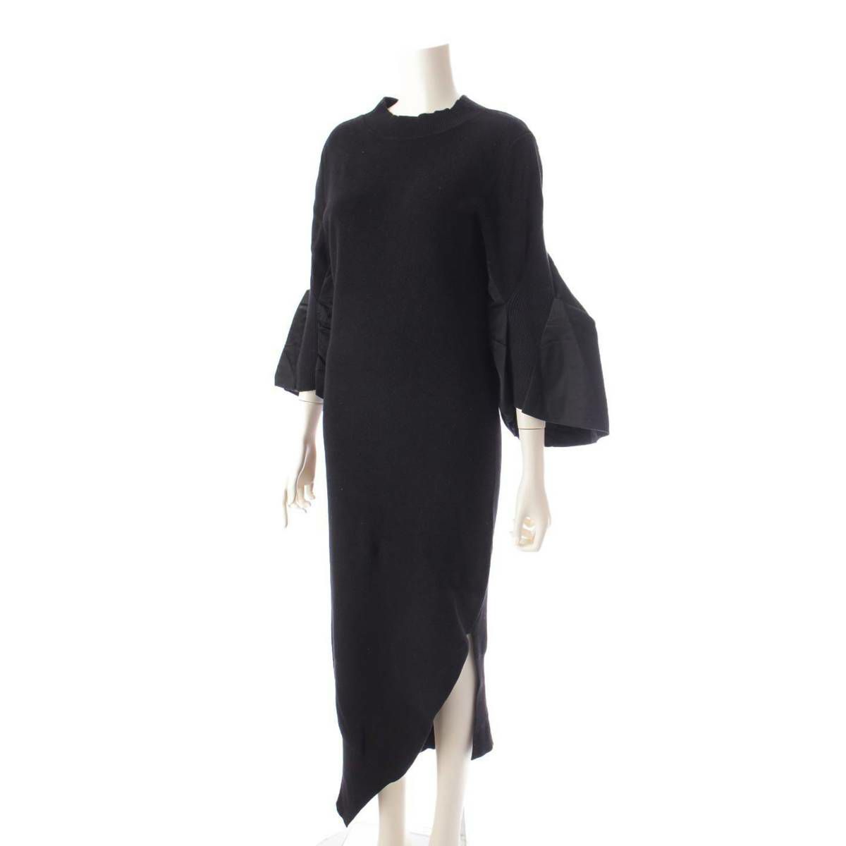 サカイ sacai 23年 ナイロンツイル 7分袖 コットン ニットワンピース ドレス 23-06676 ブラック 2