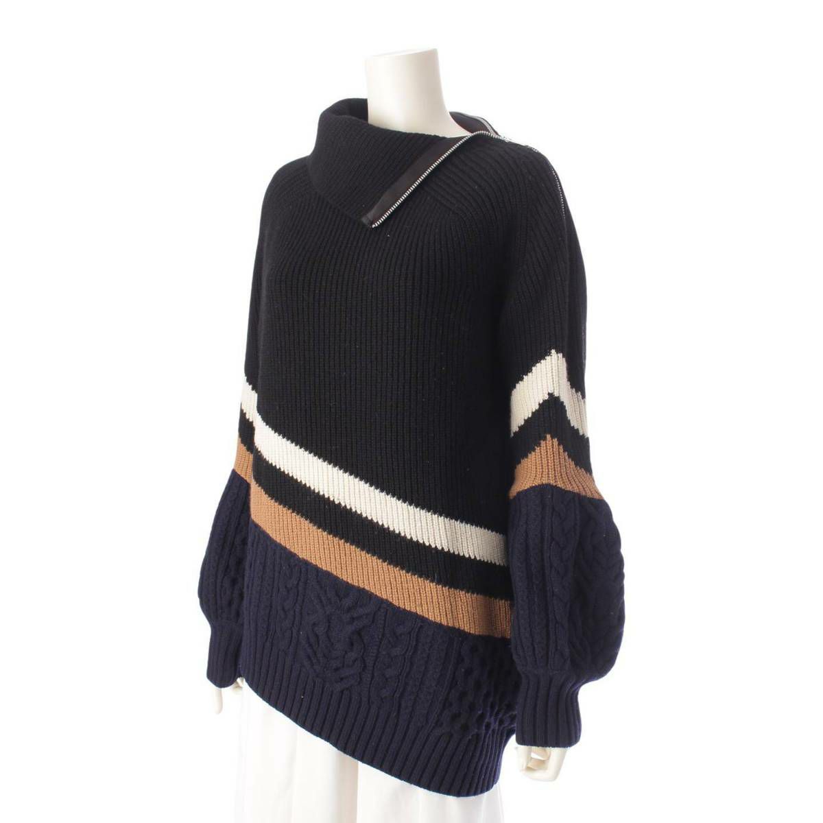 サカイ sacai 19AW アシメントリー ハーフジップ バルーンスリーブ ニット セーター ネイビー 1