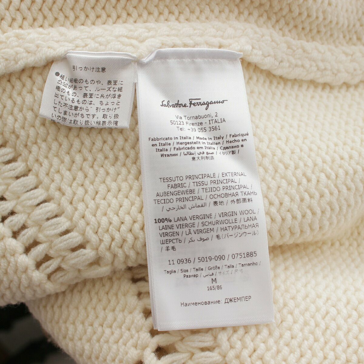 フェラガモ ガンチーニ ヴァージンウール Vネック ニットセーター オフホワイト M【中古】【正規品保証】