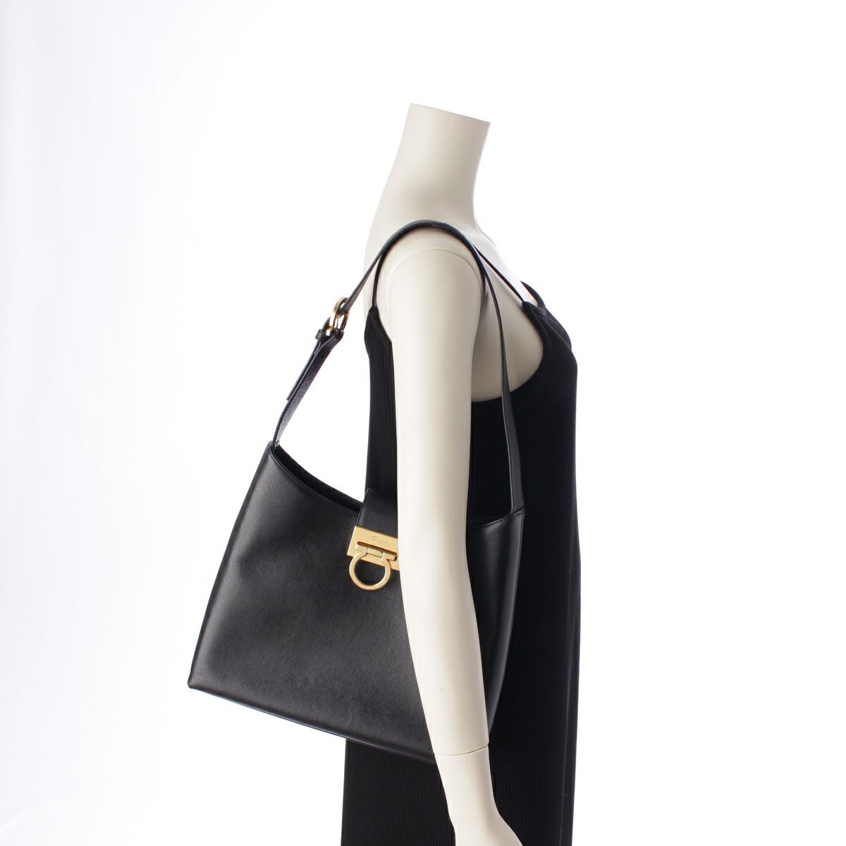 サルヴァトーレフェラガモ レザー ガンチーニ ゴールド金具 ワン ショルダーバッグ ブラック
