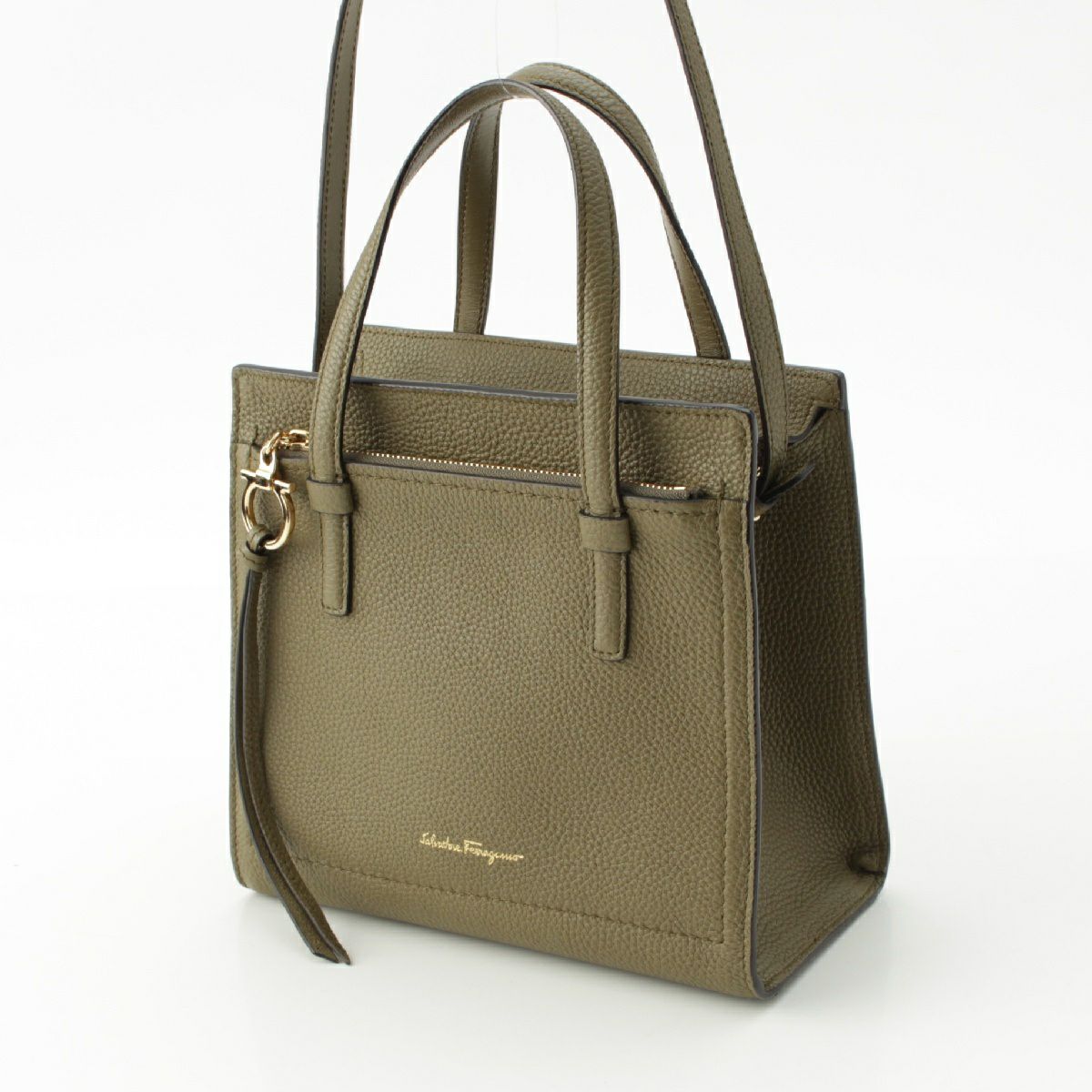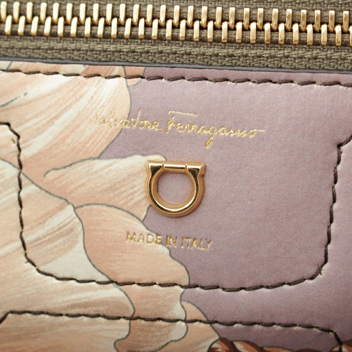 サルヴァトーレフェラガモ エイミー レザー ガンチーニ 花柄 2way ショルダー ハンドバッグ カーキ