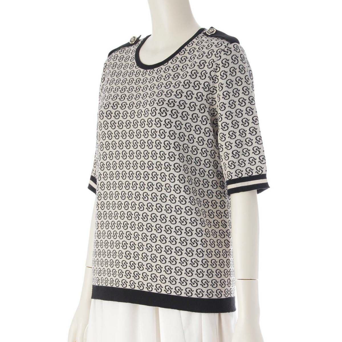 サルバトーレフェラガモ Salvatore Ferragamo モノグラム アンサンブル ロゴ 総柄 半袖ニット 長袖カーディガン ホワイトL