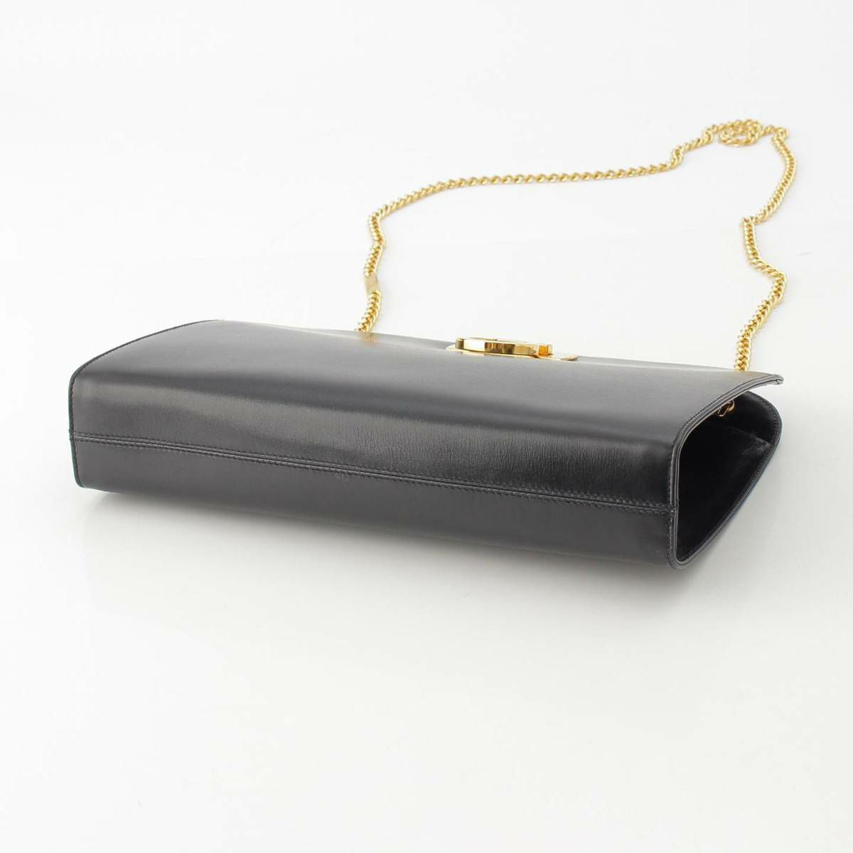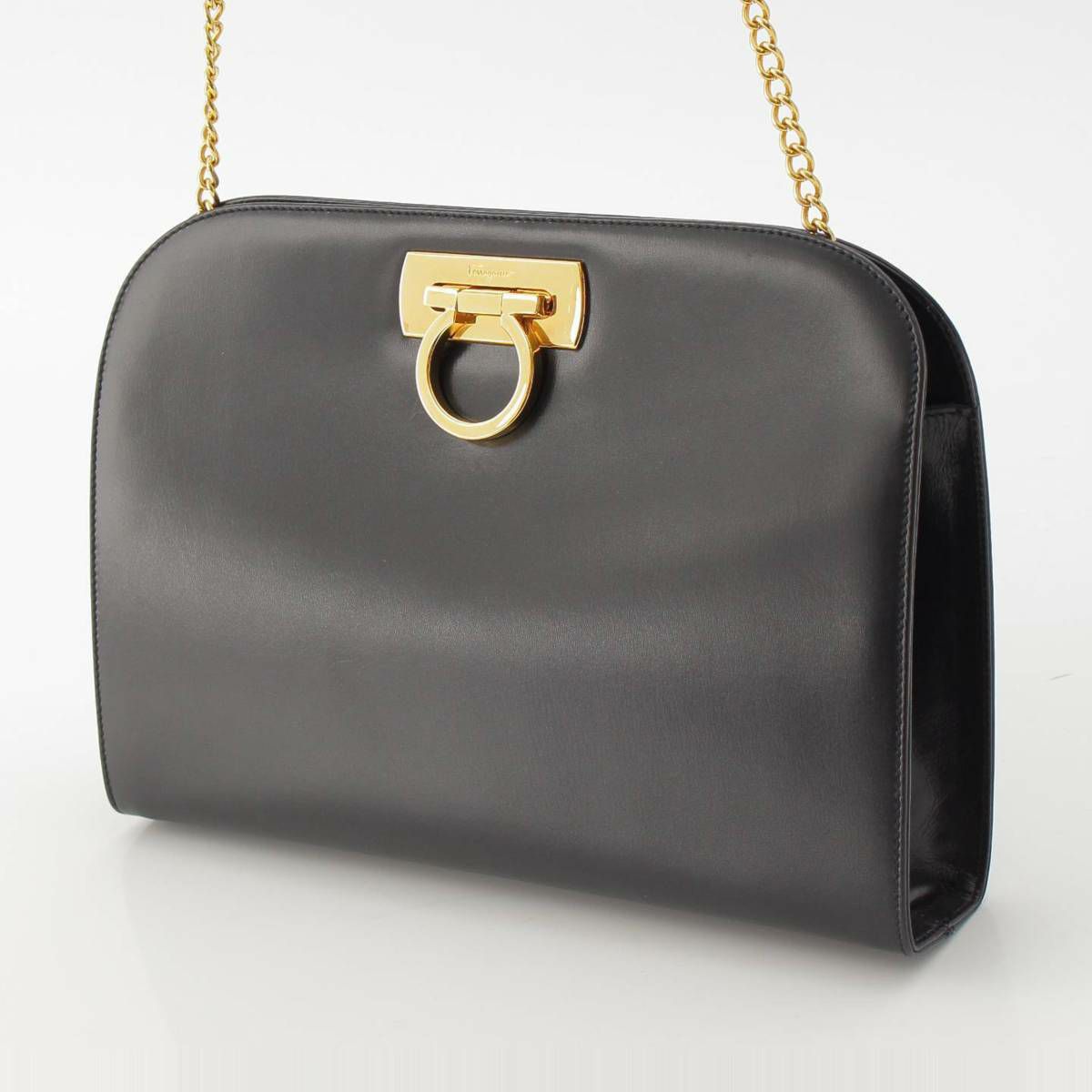 サルバトーレフェラガモ Salvatore Ferragamo ガンチーニ カーフレザー チェーンショルダーバッグ ゴールド金具 ブラック