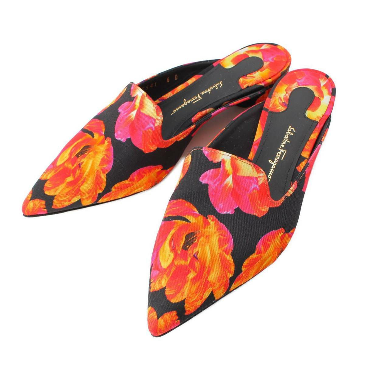 サルバトーレフェラガモ Salvatore Ferragamo MAIDA ポインティッドトゥ 花柄 サテンミュール サンダル 0684591 マルチカラー 6D