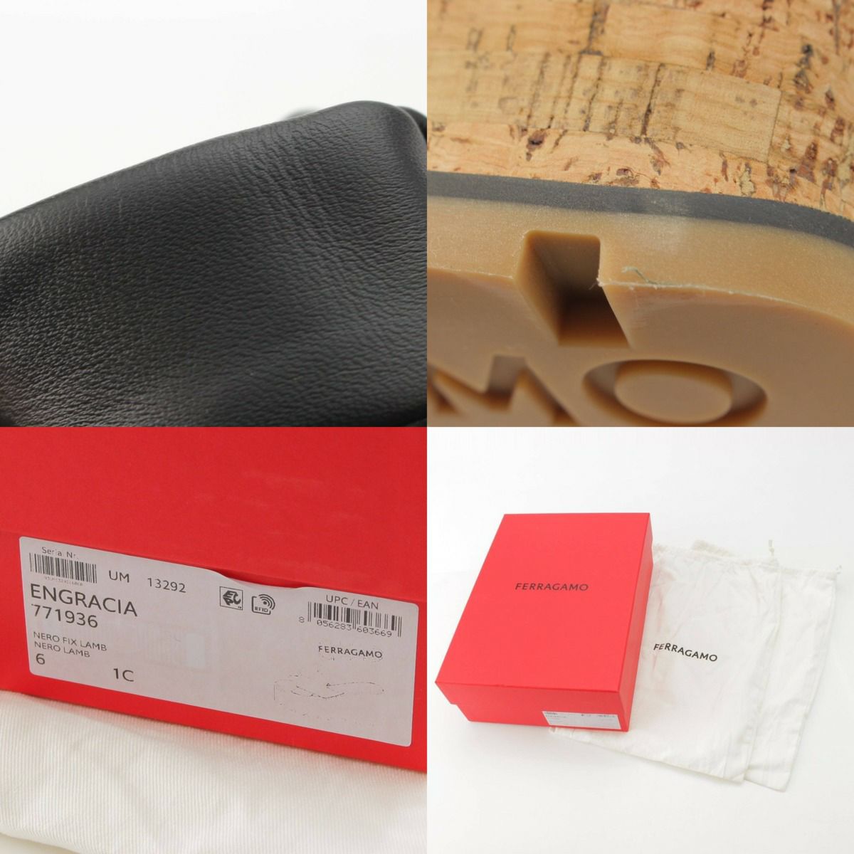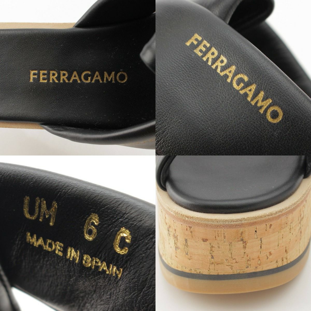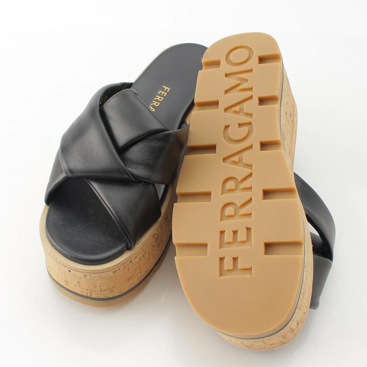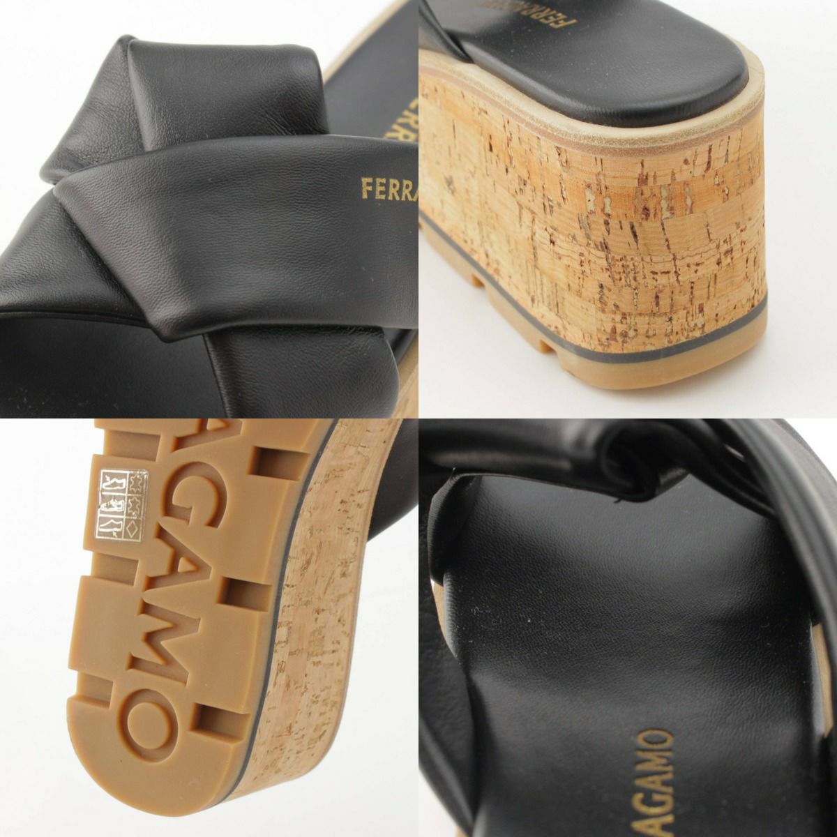 サルバトーレフェラガモ Salvatore Ferragamo 24SS ENGRACIA サンダル ウェッジ コルクソール レザー 771936 ブラック 6