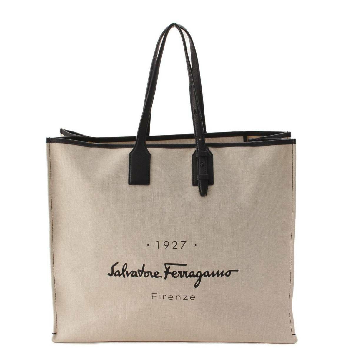 サルバトーレフェラガモ Salvatore Ferragamo 1927 ロゴ キャンバス×レザー トートバッグ F2-24 0819 ナチュラル
