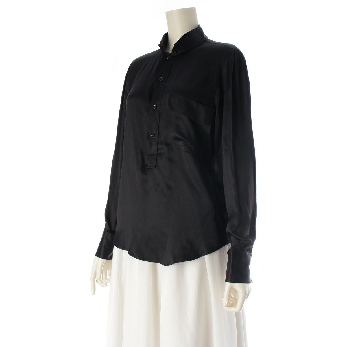 サンローラン シルク 長袖シャツ ブラック S