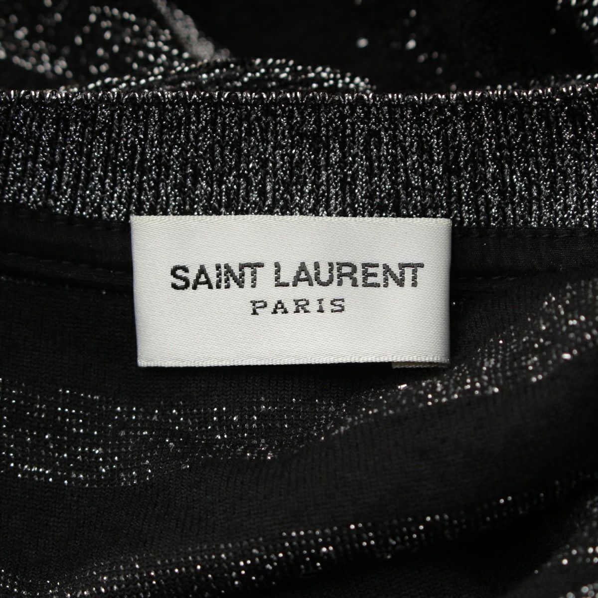 サンローラン 19年 ボーダー ラメ ニット セーター トップス 590365 ブラック シルバー M