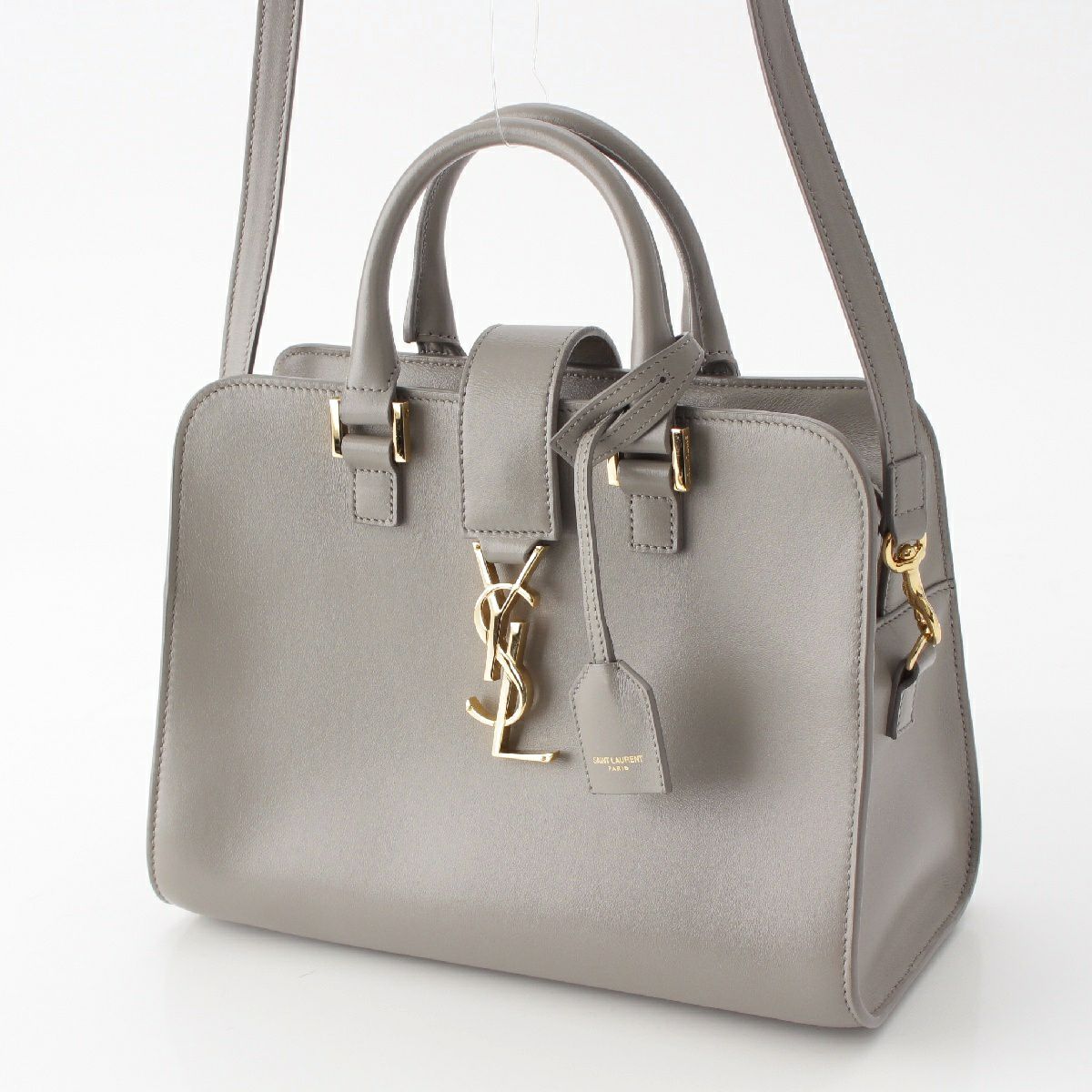 サンローラン ベイビーカバス レザー YSLロゴ ゴールド金具 2WAY ハンドバッグ 472466 グレー
