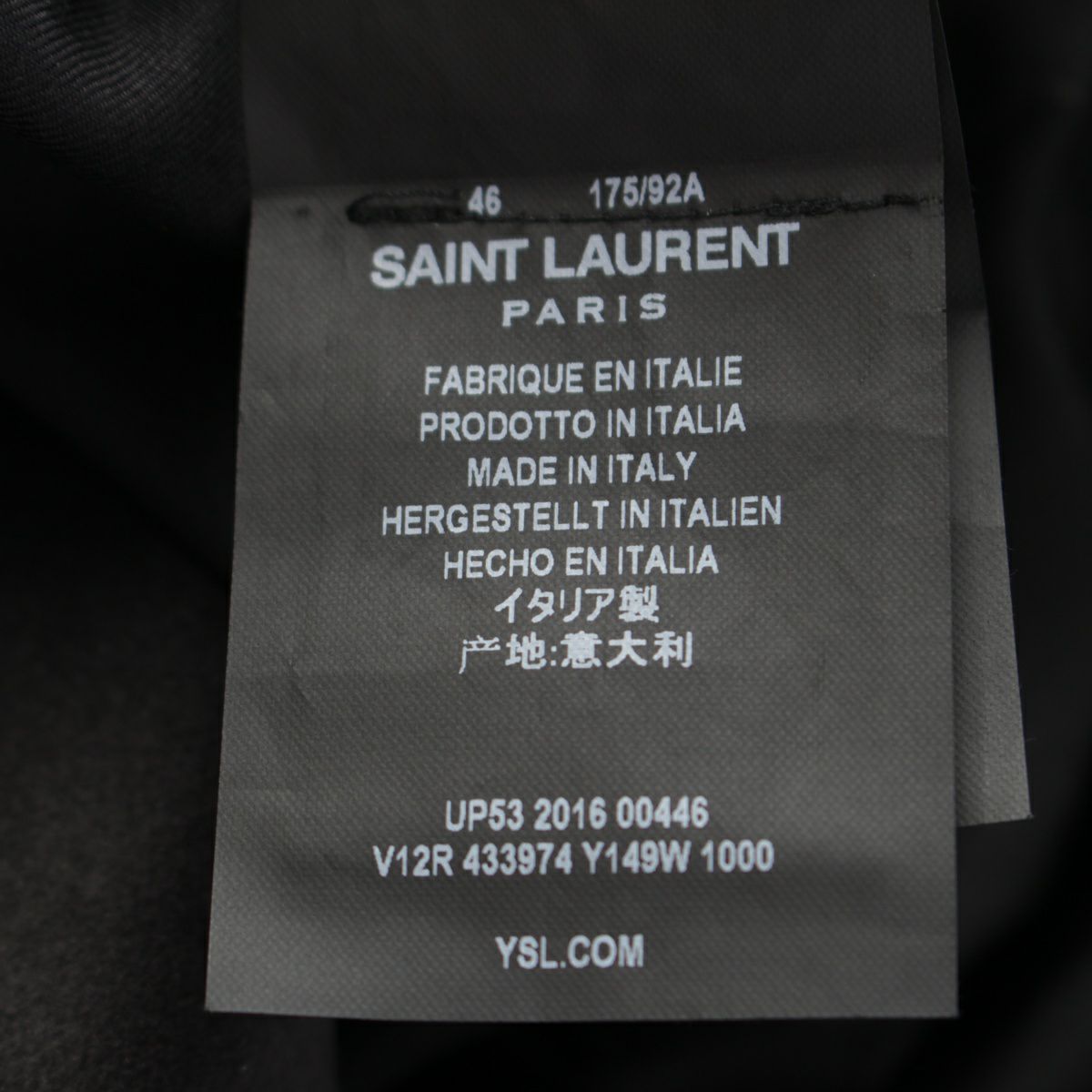 サンローラン 16年 ウール シルク くるみボタン 1B スモーキング タキシード ジャケット アウター 433974 ブラック 46