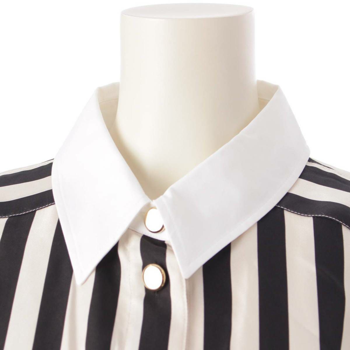 サンローラン SAINT LAURENT 22SS シルク オーバーサイズ ストライプ シャツ ブラウス ブラック×ホワイト 38