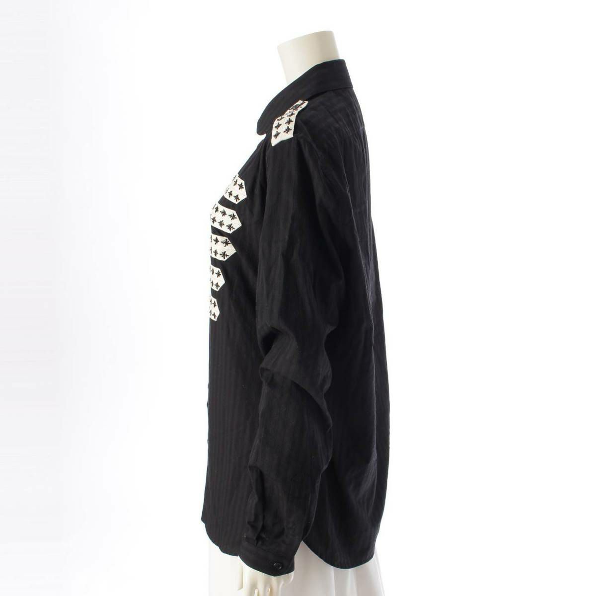 サンローラン SAINT LAURENT 20SS ビーズ刺繍 ストライプ 丸襟 シャツ ブラウス 599691 ブラック 38