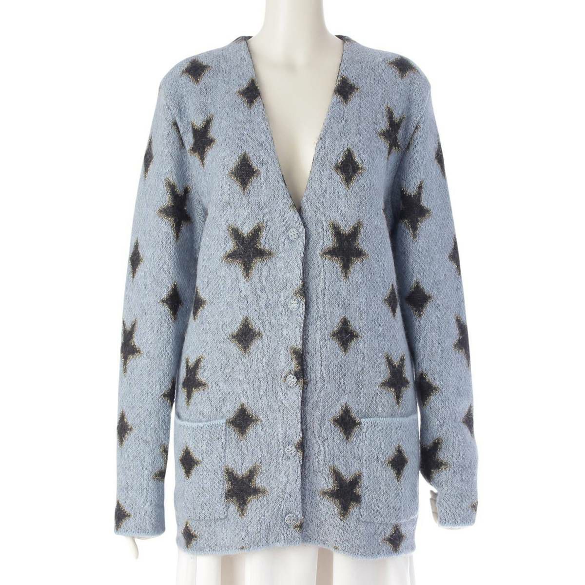 サンローラン SAINT LAURENT 13年 スター 星 モヘア ウール混 カーディガン トップス 334094 ブルー S