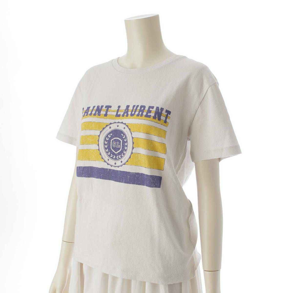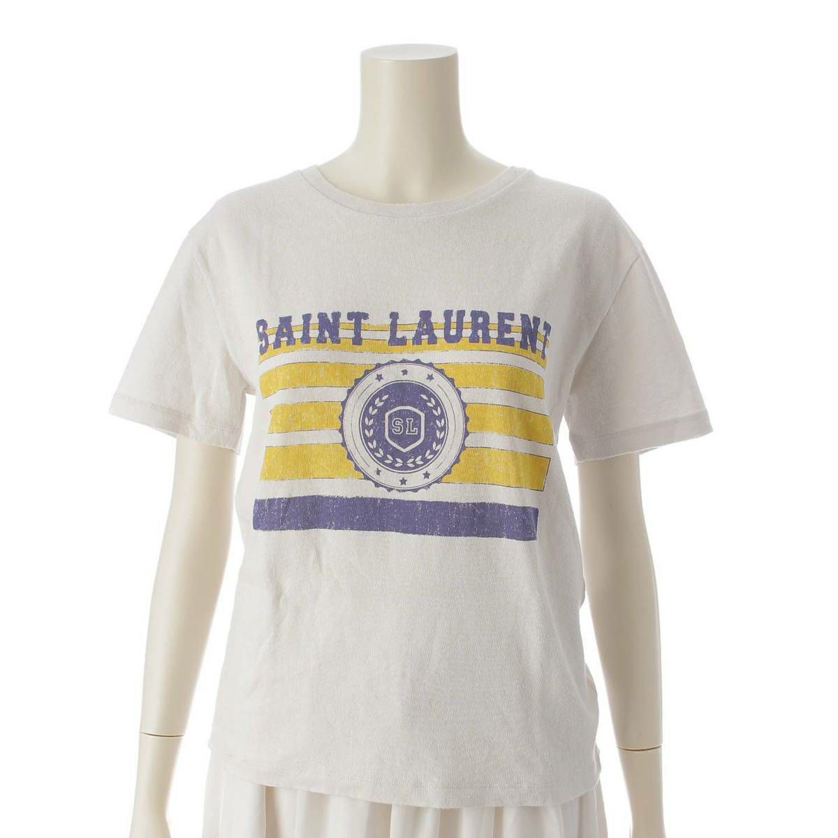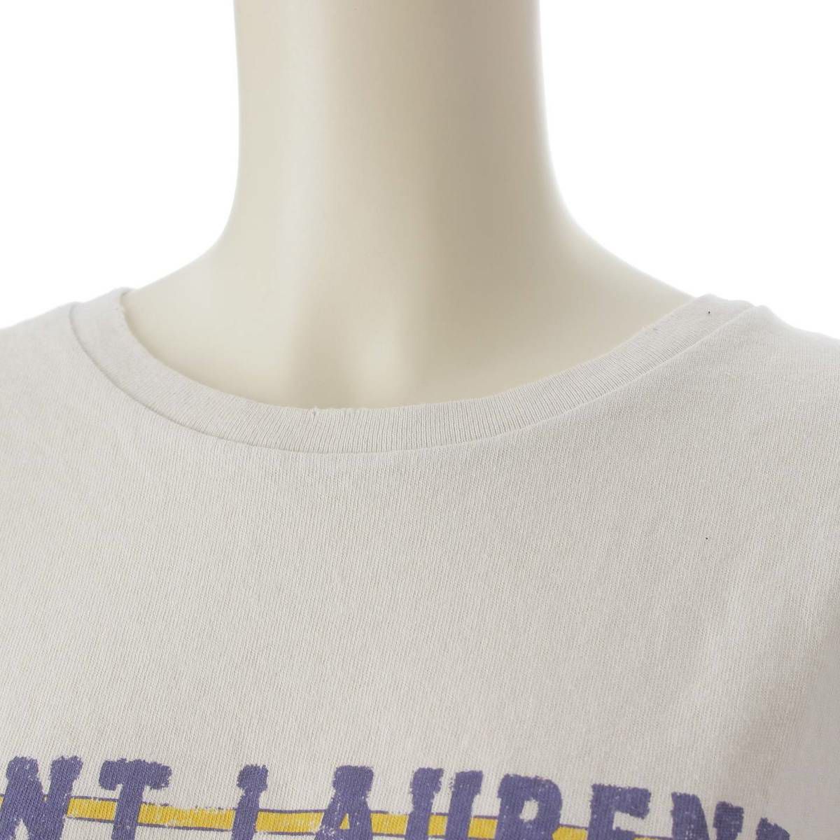 サンローラン SAINT LAURENT 18年 ダメージ加工 ロゴ プリント Tシャツ カットソー トップス アイボリー XS