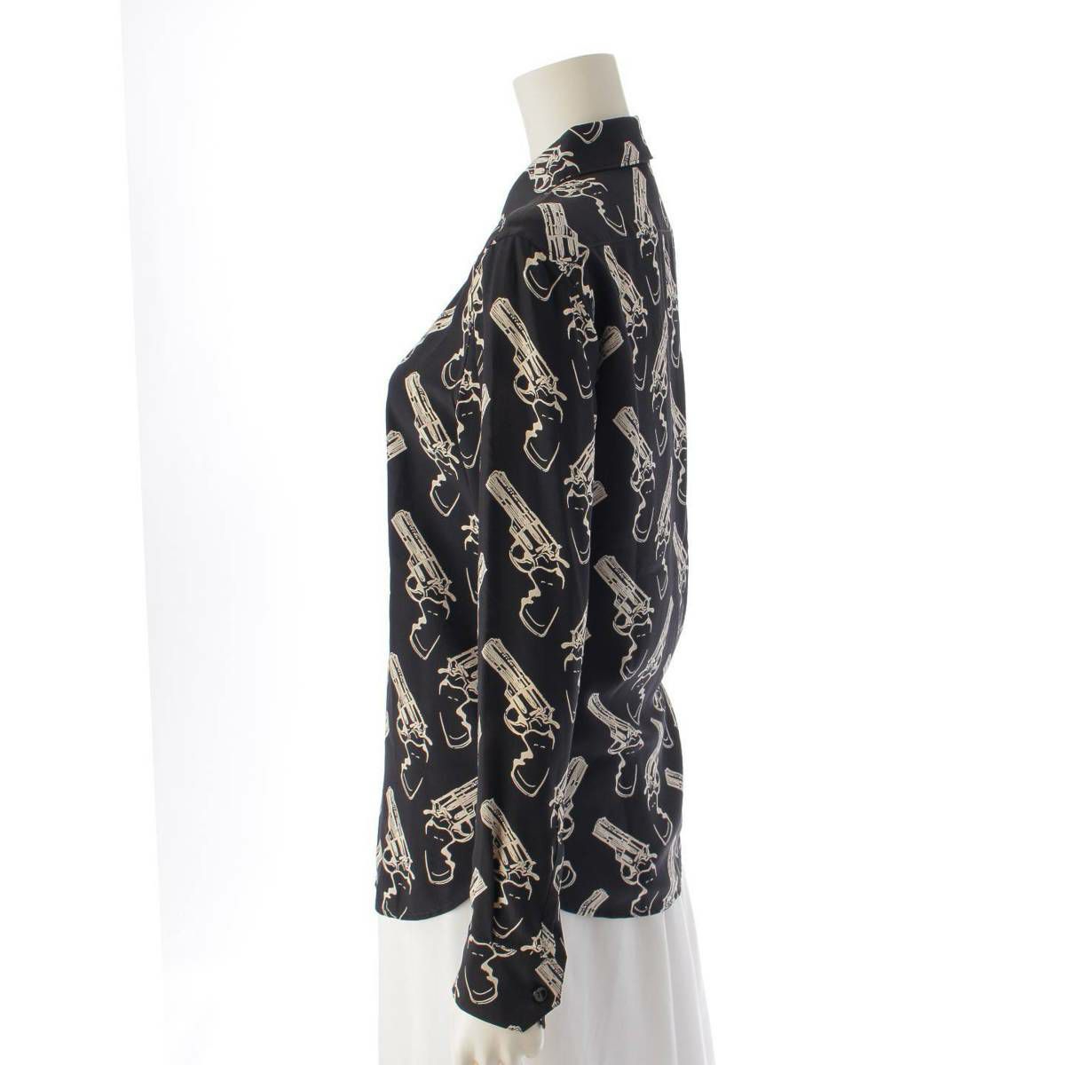 サンローラン SAINT LAURENT 14AW エディ期 ピストル ガン 総柄 長袖 シャツ トップス ブラック ホワイト 36