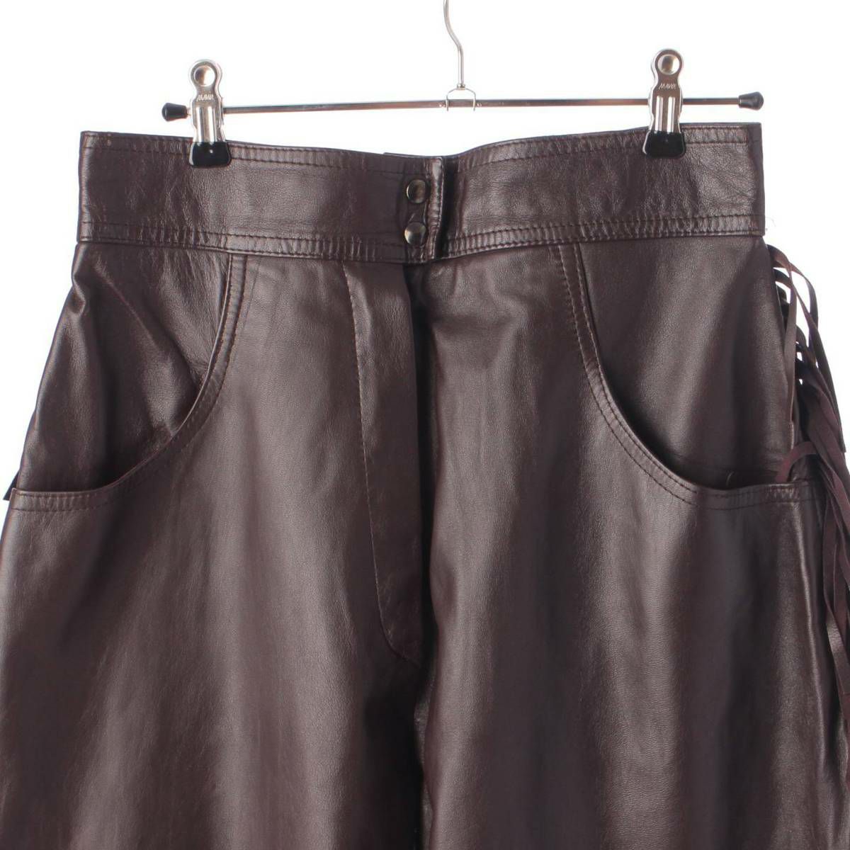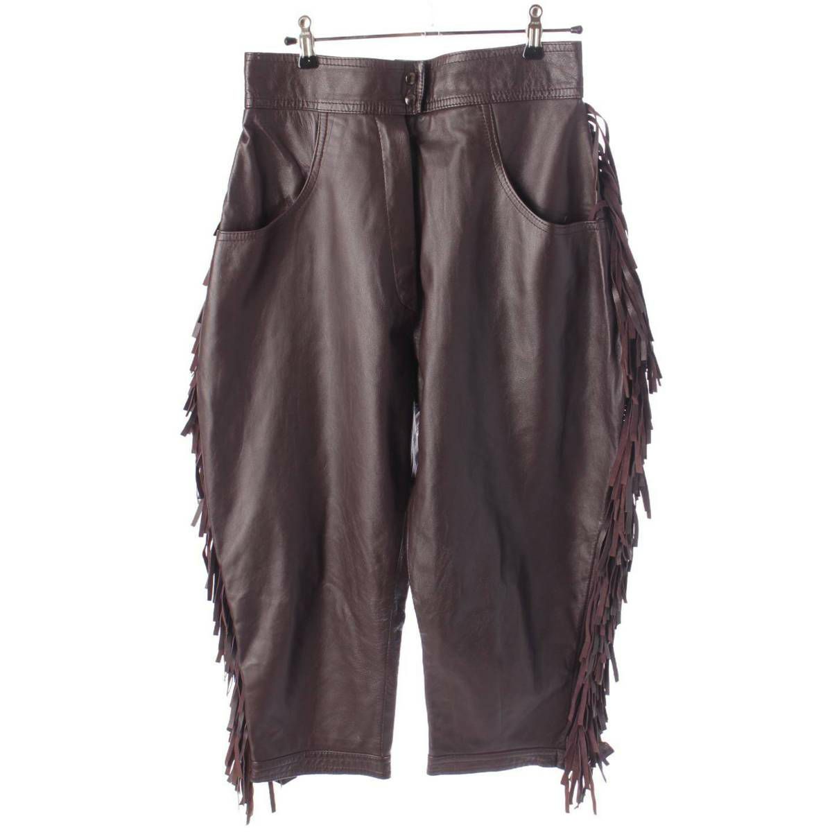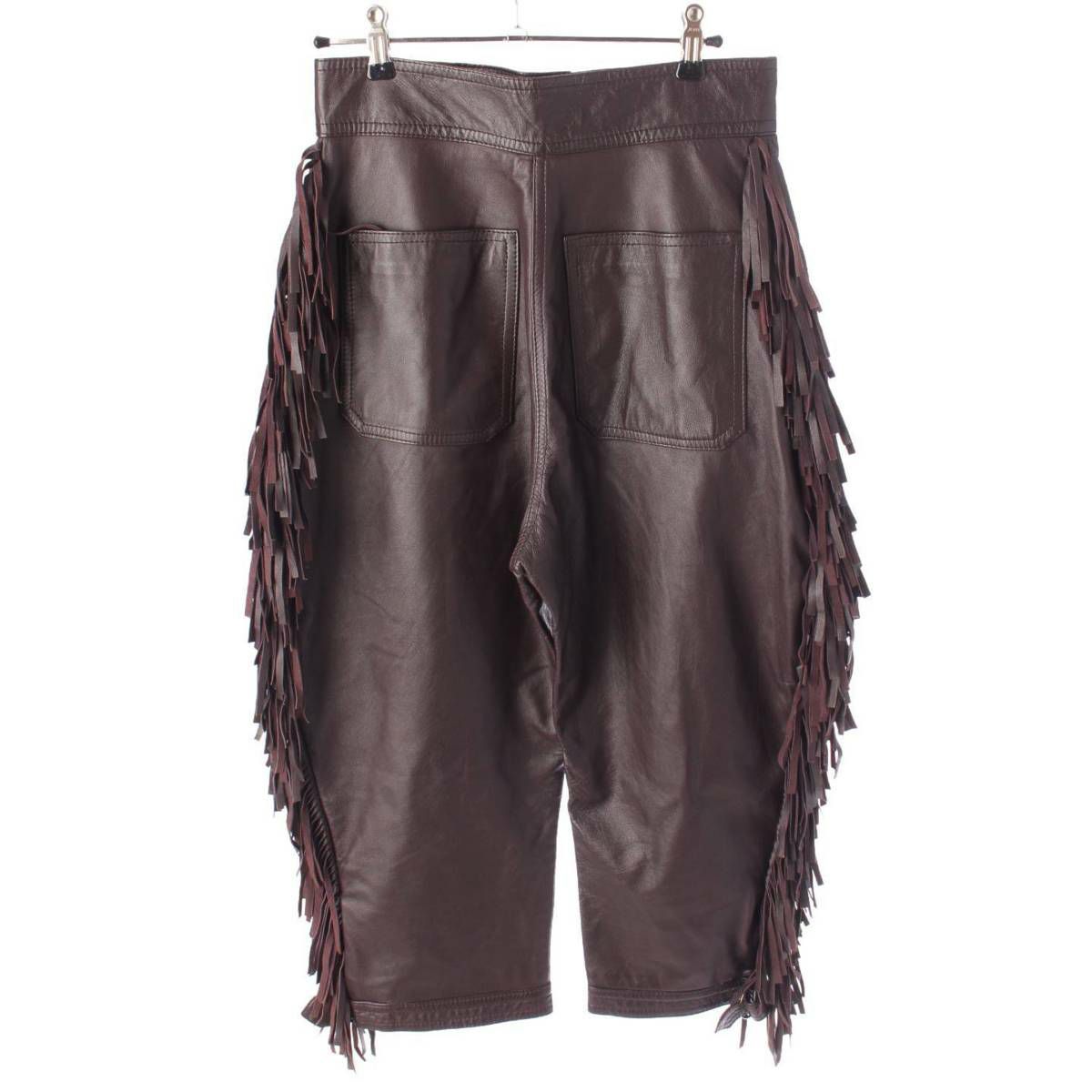 サンローラン SAINT LAURENT メンズ レザー ヴィンテージ フリンジ ニッカーズ パンツ ブラウン 44