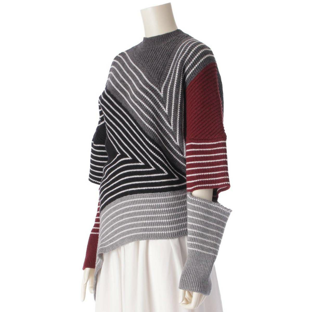 ステラマッカートニー Stella McCartney 22AW デザイン ウール 長袖 ニット セーター グレー×ブラック×レッド 38