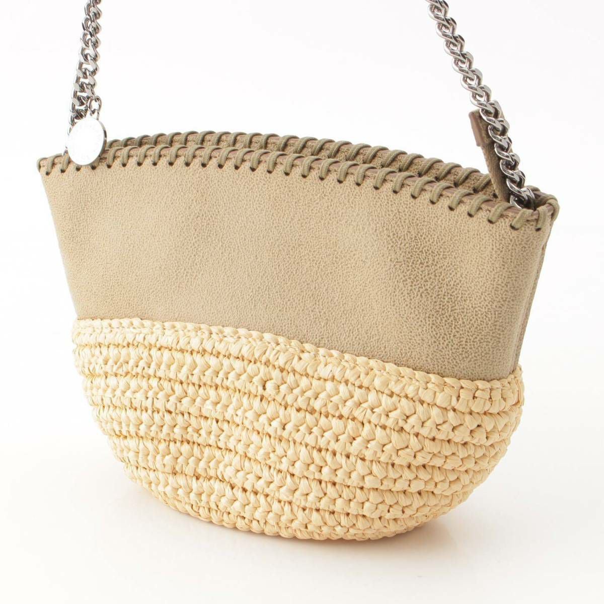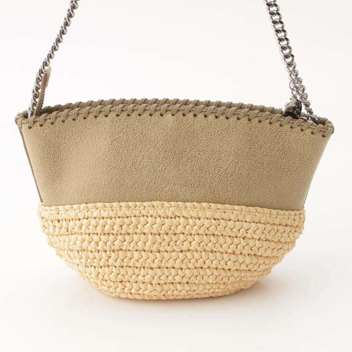 ステラマッカートニー Stella McCartney ファラベラ FALABELLA ラフィア ミニ チェーンショルダー かごバッグ 700226 カーキ