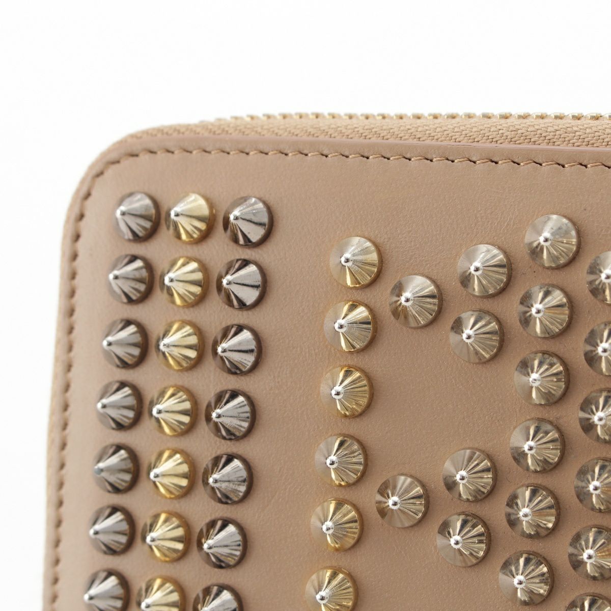 クリスチャンルブタン パネトーネ スパイクスタッズ ラウンドジップ ウォレット 長財布 ベージュ