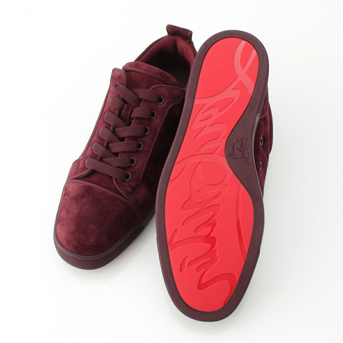 クリスチャンルブタン 25年 ベロア ルイスジュニア ベロア ローカット スニーカー シューズ 靴 3240426 ボルドー系 41 1/2