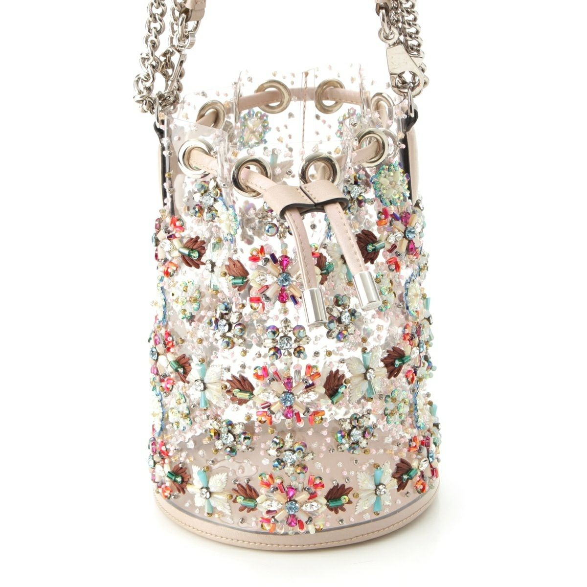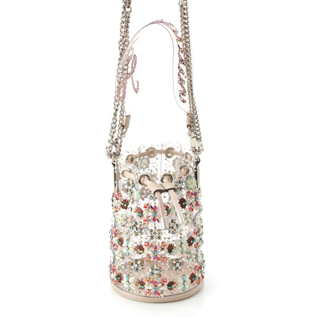 クリスチャンルブタン marie jane ビニール クリア ビーズ フラワー ロゴバケットバッグ 巾着 ハンドバッグ マルチカラー