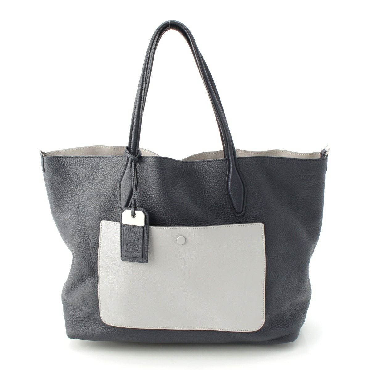 トッズ ジョイ レザー リバーシブル 2WAY ショルダー トートバッグ ネイビー×グレー