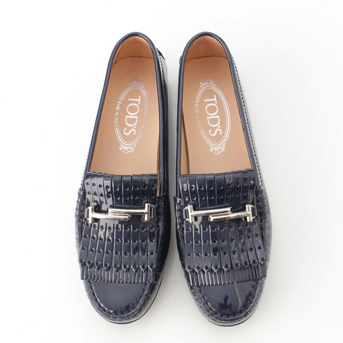 トッズ Tods ダブルT タッセル パテントレザー ローファー ネイビー 36 1/2