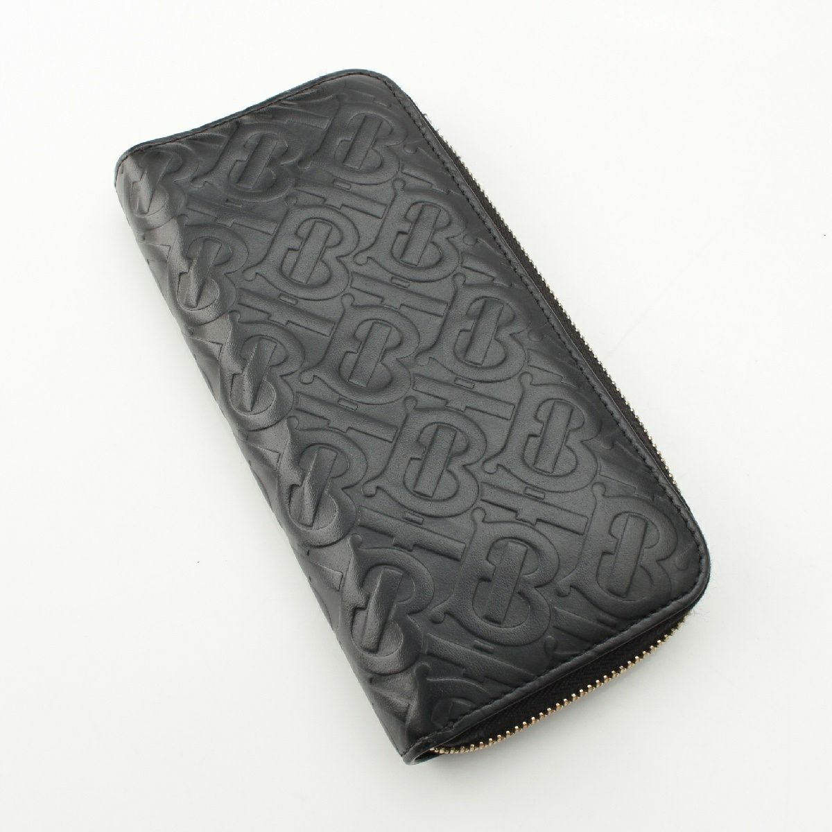 バーバリー レザー TBパターン ラウンドジップウォレット 長財布 ブラック