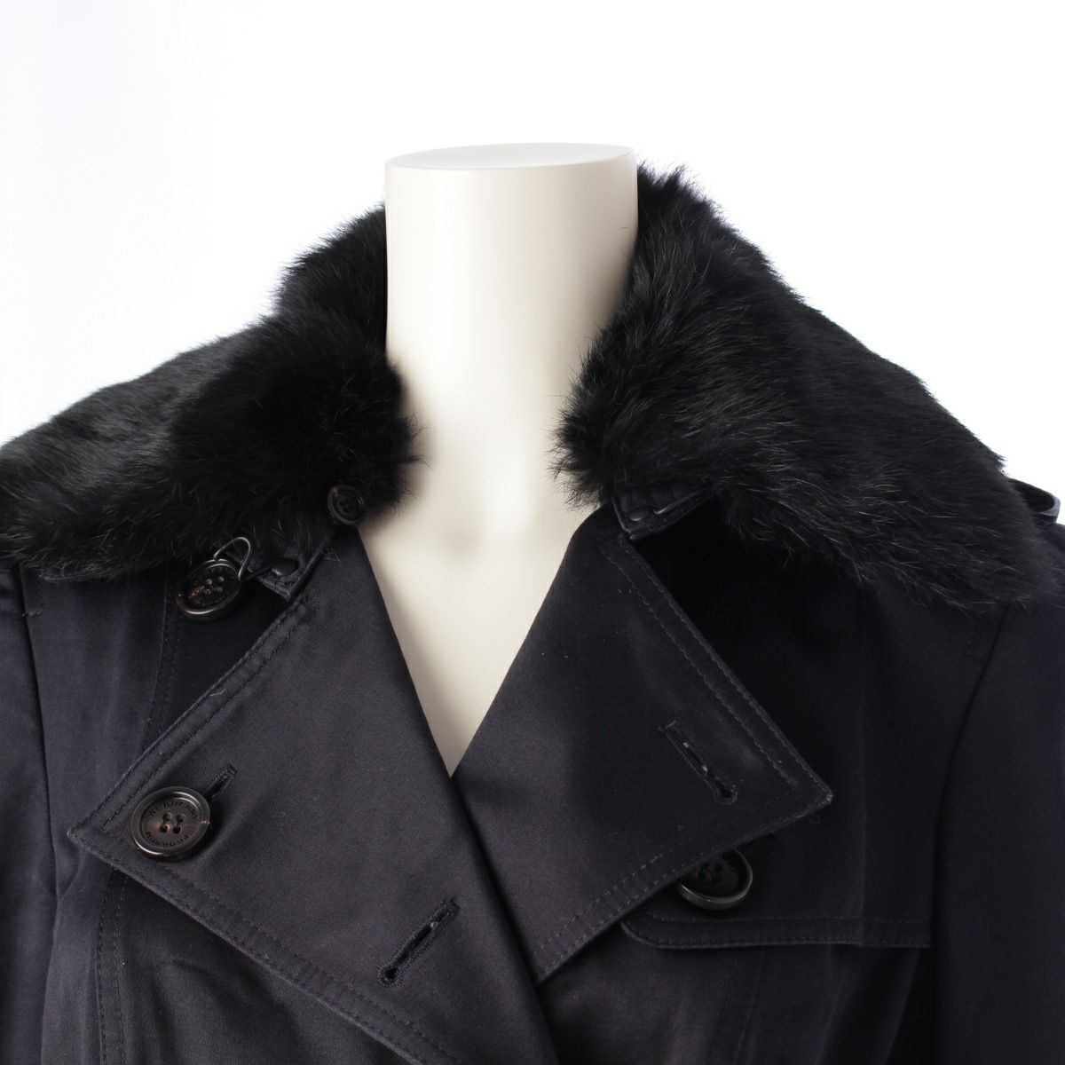 バーバリー ラビットファー ベルト トレンチコート アウター ブラック 38