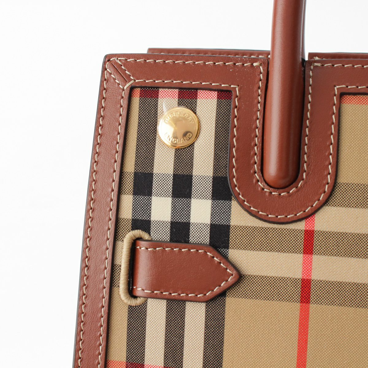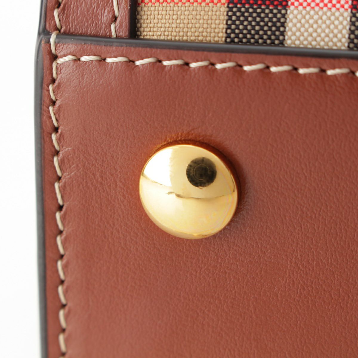 バーバリー タイトルミニ コットン レザー ヴィンテージノバチェック 2WAY ショルダー ハンドバッグ 8025267 ブラウン ベージュ