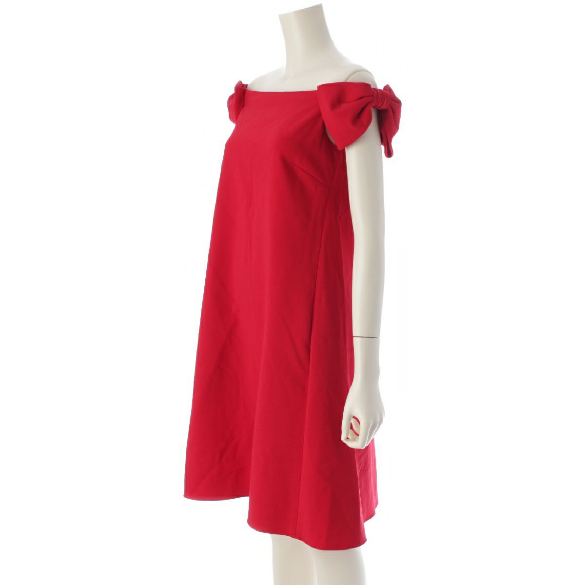 ヴァレンティノ ウール ショルダーリボン ボウデザイン ノースリーブ ワンピース ドレス レッド 38