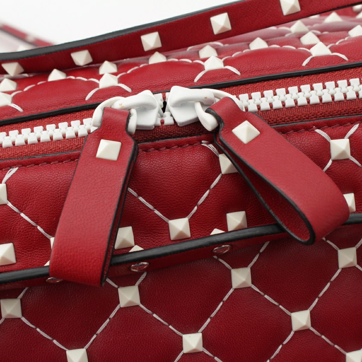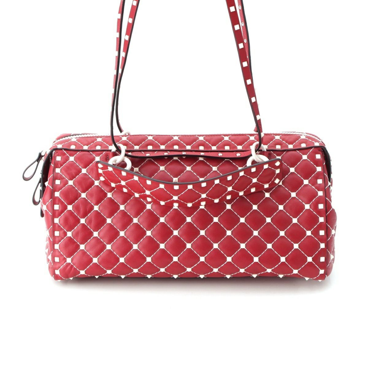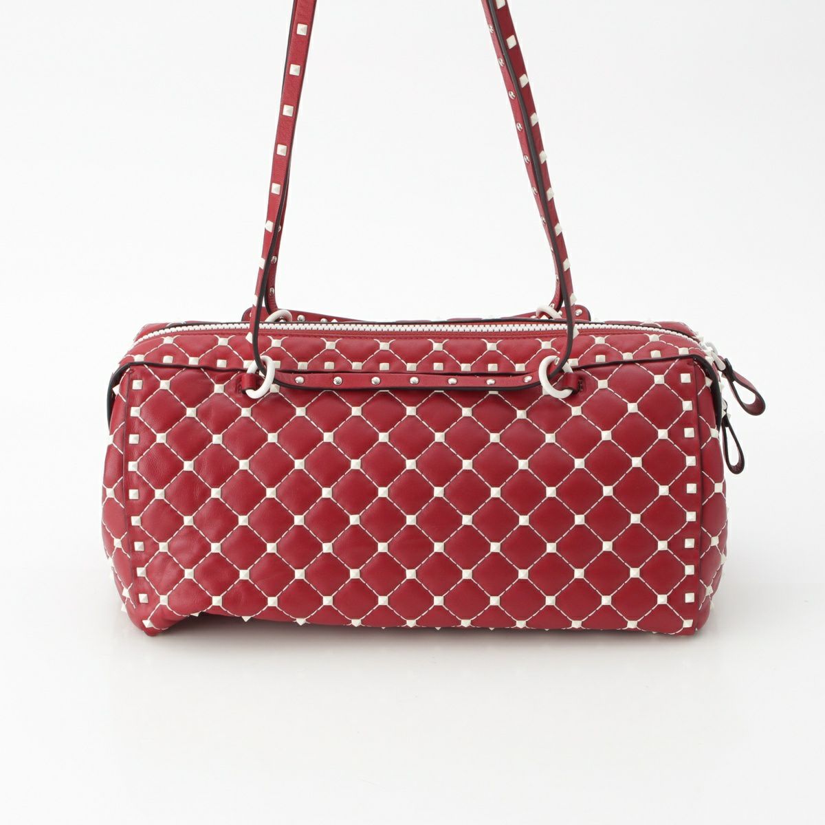 ヴァレンティノ・ガラヴァーニ レザー スタッズ 2WAY クラッチ ボストンバッグ PW2B0B33RVH レッド