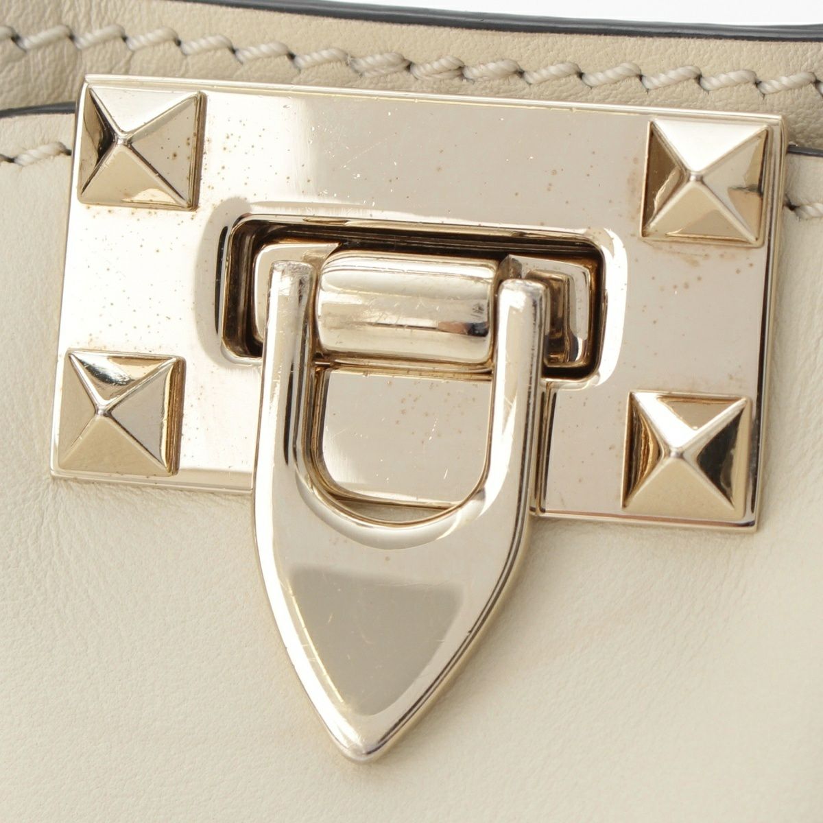 ヴァレンティノ ロックスタッズ レザー 2WAY ショルダー ハンドバッグ アイボリー