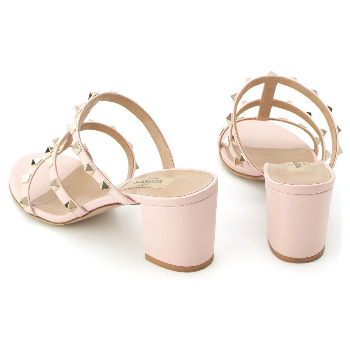 ヴァレンティノ レザー スタッズ ミュール サンダル ピンク 36 1/2