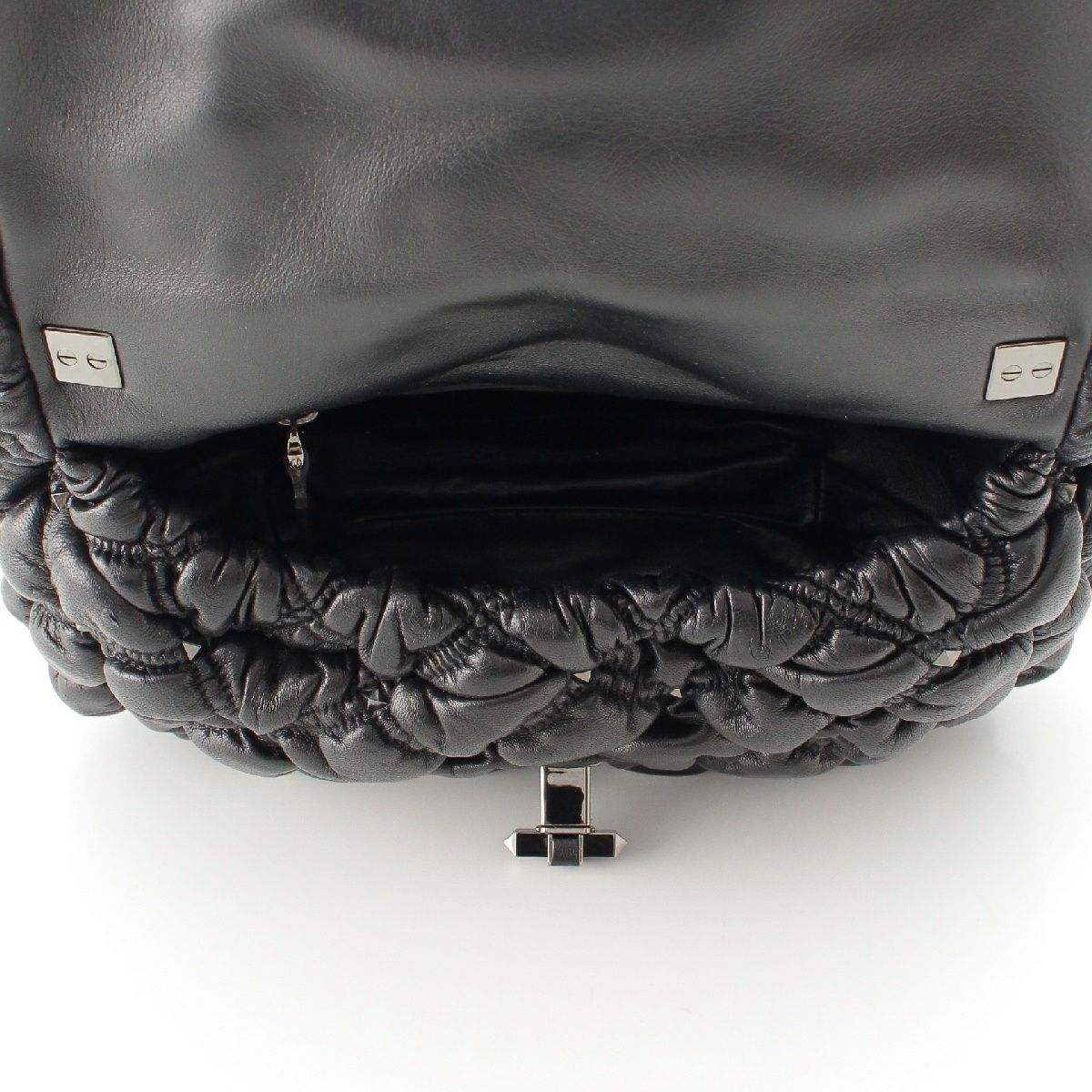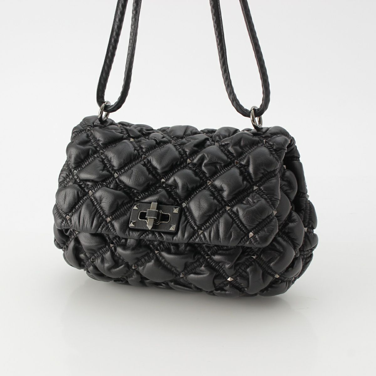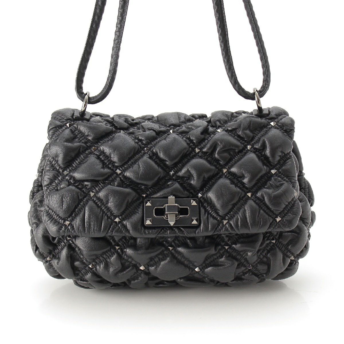 ヴァレンティノ レザー ロックスタッズ キルティング ショルダーバッグ ブラック