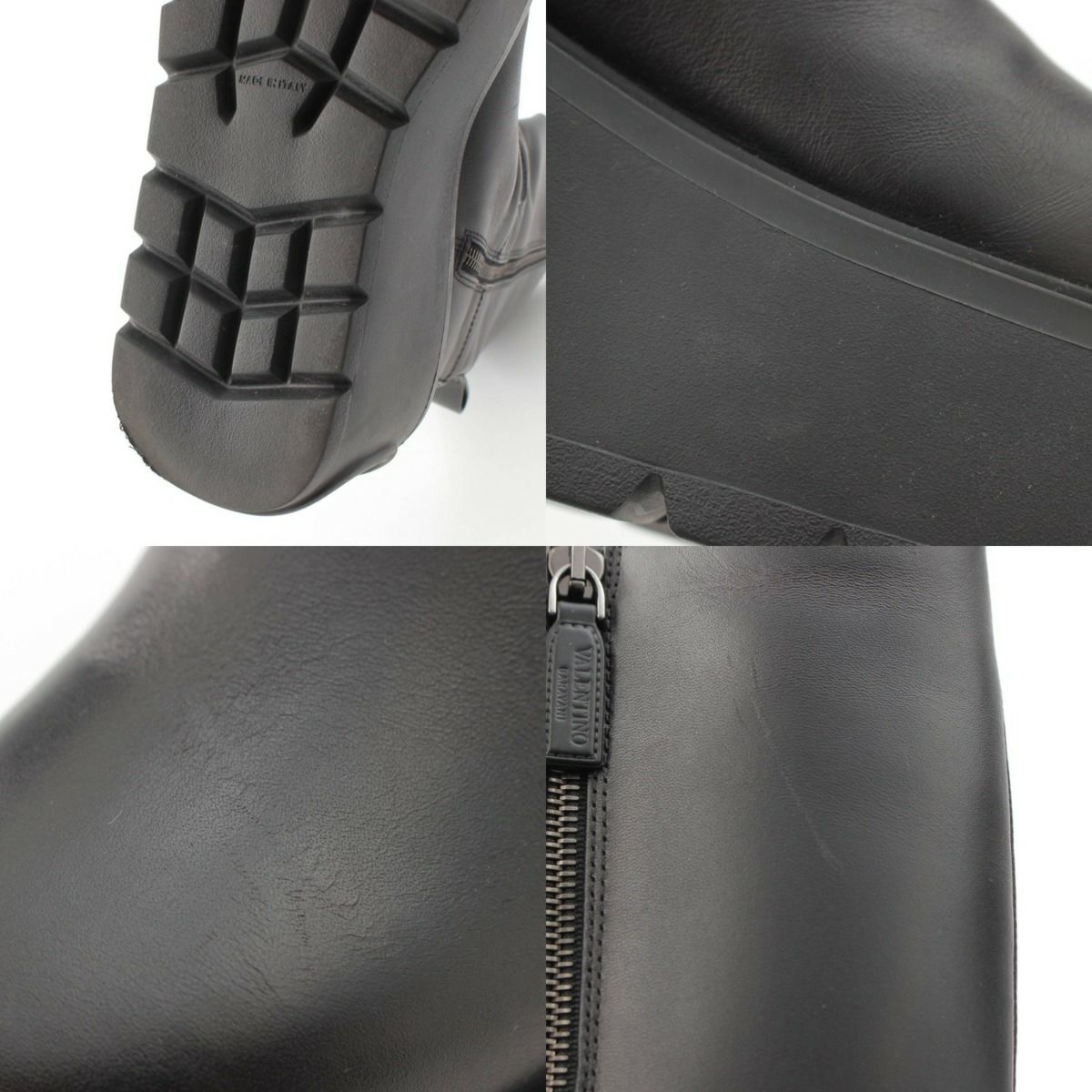ヴァレンティノ Valentino ユニークフォーム レザー ロゴ サイドジップ ロングブーツ ブラック 37 1/2