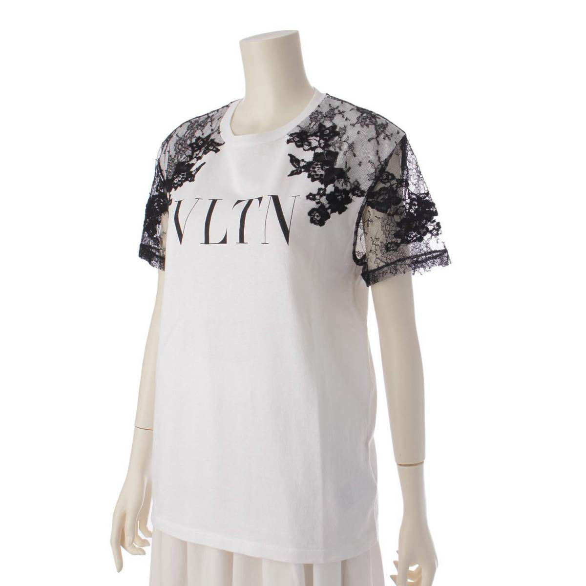ヴァレンティノ Valentino VLTNロゴ レーススリーブ コットン 半袖 Tシャツ トップス ホワイト XS