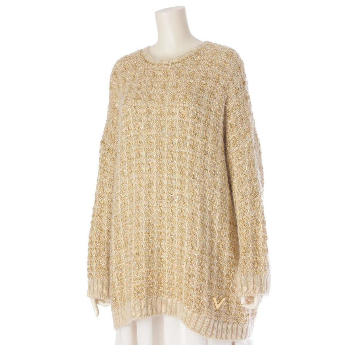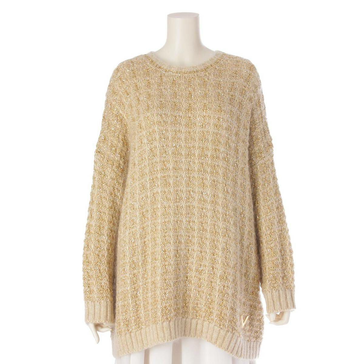 ヴァレンティノ Valentino 22年 Vロゴ モヘア スパンコール ニット セーター トップス 2B3KC42X7P4 イエロー XS